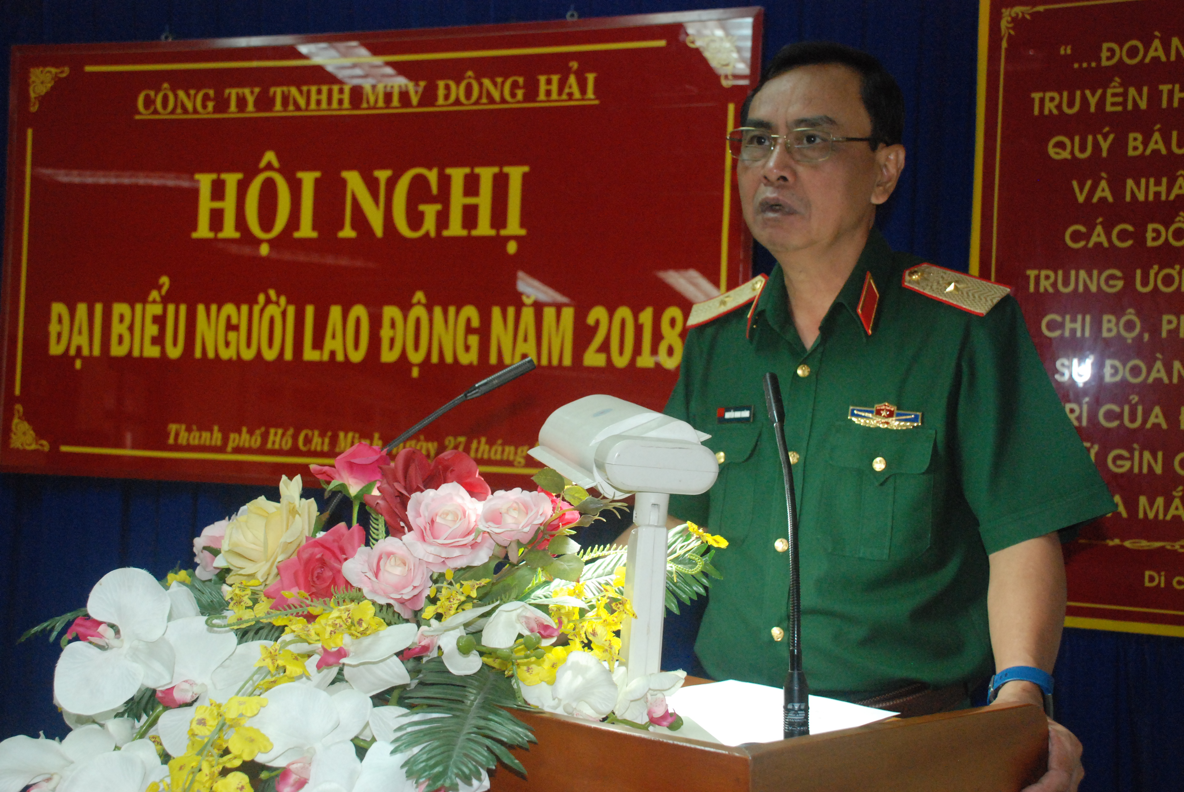 (QK7 Online) - Ngày 27/3/2018, Công ty Đông Hải tổ chức Hội nghị Đại biểu người lao động năm 2018. Đến dự hội nghị có Thiếu tướng Nguyễn Minh Hoàng, Ủy viên Thường vụ, Phó Chính ủy Quân khu.