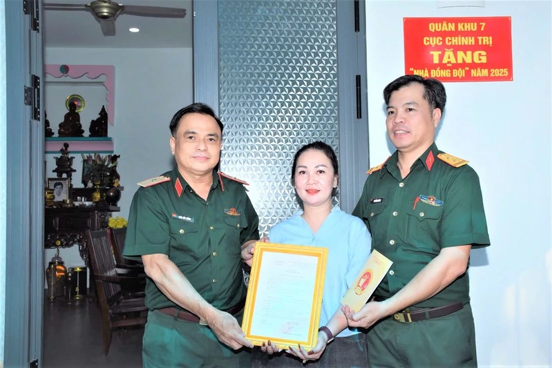 (QK7 Online) - Nằm trong chuỗi hoạt động thiết thực chào mừng 81 năm Ngày thành lập Quân đội Nhân dân Việt Nam (22/12/1944 – 22/12/2025), 36 năm Ngày hội Quốc phòng toàn dân (22/12/1989 – 22/12/2025) và hướng tới 80 năm Ngày truyền thống Cục Chính trị (20/02/1946 – 20/02/2026), chiều ngày 18/12, Cục Chính trị Quân khu tổ chức bàn giao “Nhà tình nghĩa” cho gia đình đồng chí Trần Thành Quyền, chiến sĩ dân quân tự vệ Ban CHQS xã An Long, thường trú tại tổ 19, ấp 9, xã An Long, TP. Hồ Chí Minh.