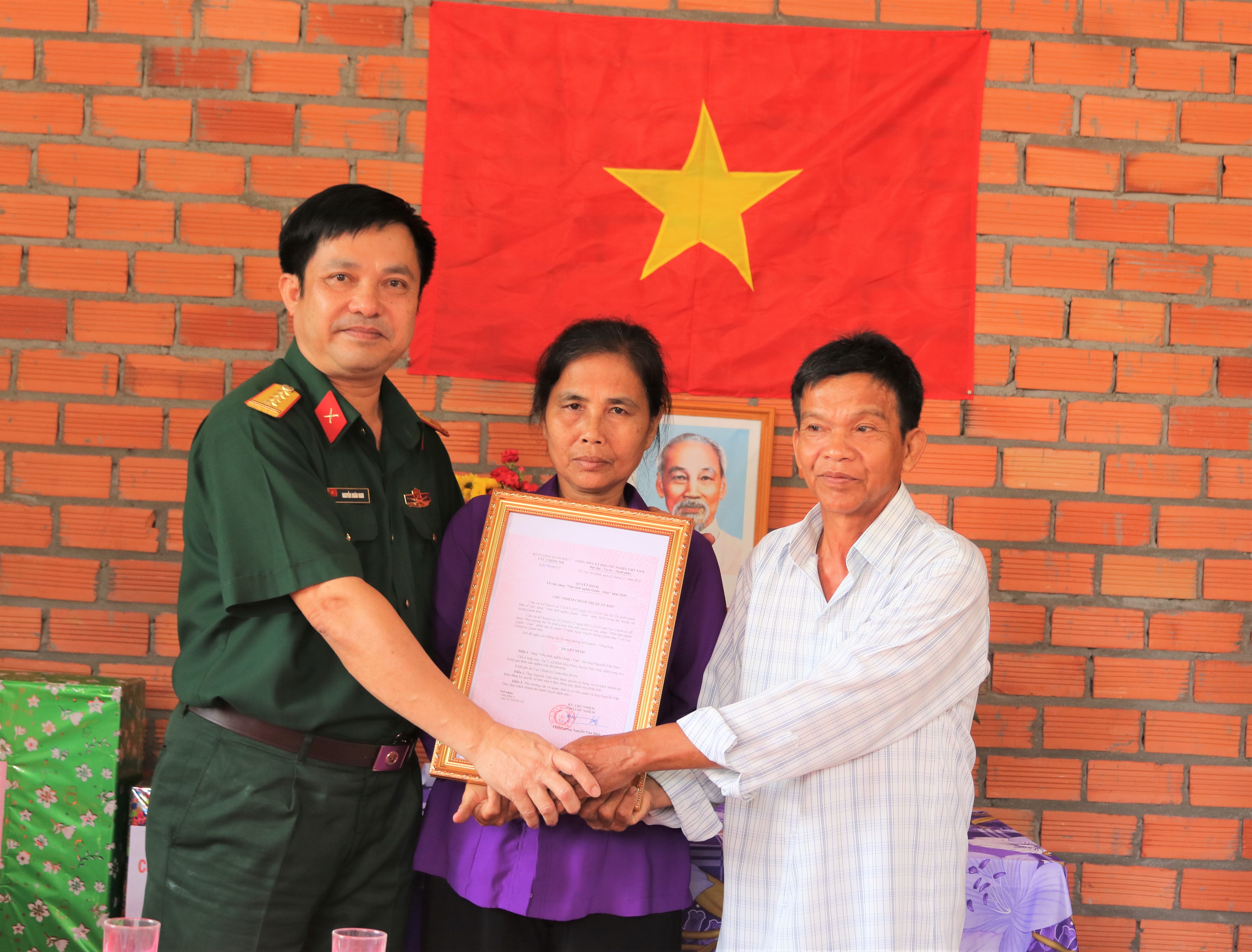 Qua gần một tháng xây dựng, đến nay căn nhà hoàn thành, bàn giao đưa vào sử dụng đảm bảo chất lượng, đúng tiến độ. Căn nhà với tổng diện tích 64m². Trong đó, Cục Chính trị Quân khu cùng các nhà tài trợ: Công ty Truyền thông quân-dân Sài Gòn, Mặt trận Tổ quốc Quận 10, Tp.HCM hỗ trợ 80 triệu đồng; người thân hỗ trợ 20 triệu đồng và UBND xã Bình Hòa Nam trực tiếp tổ chức xây dựng và hỗ trợ một số ngày công, hoàn chỉnh về phần pháp lý để công trình được xây dựng theo đúng quy định.