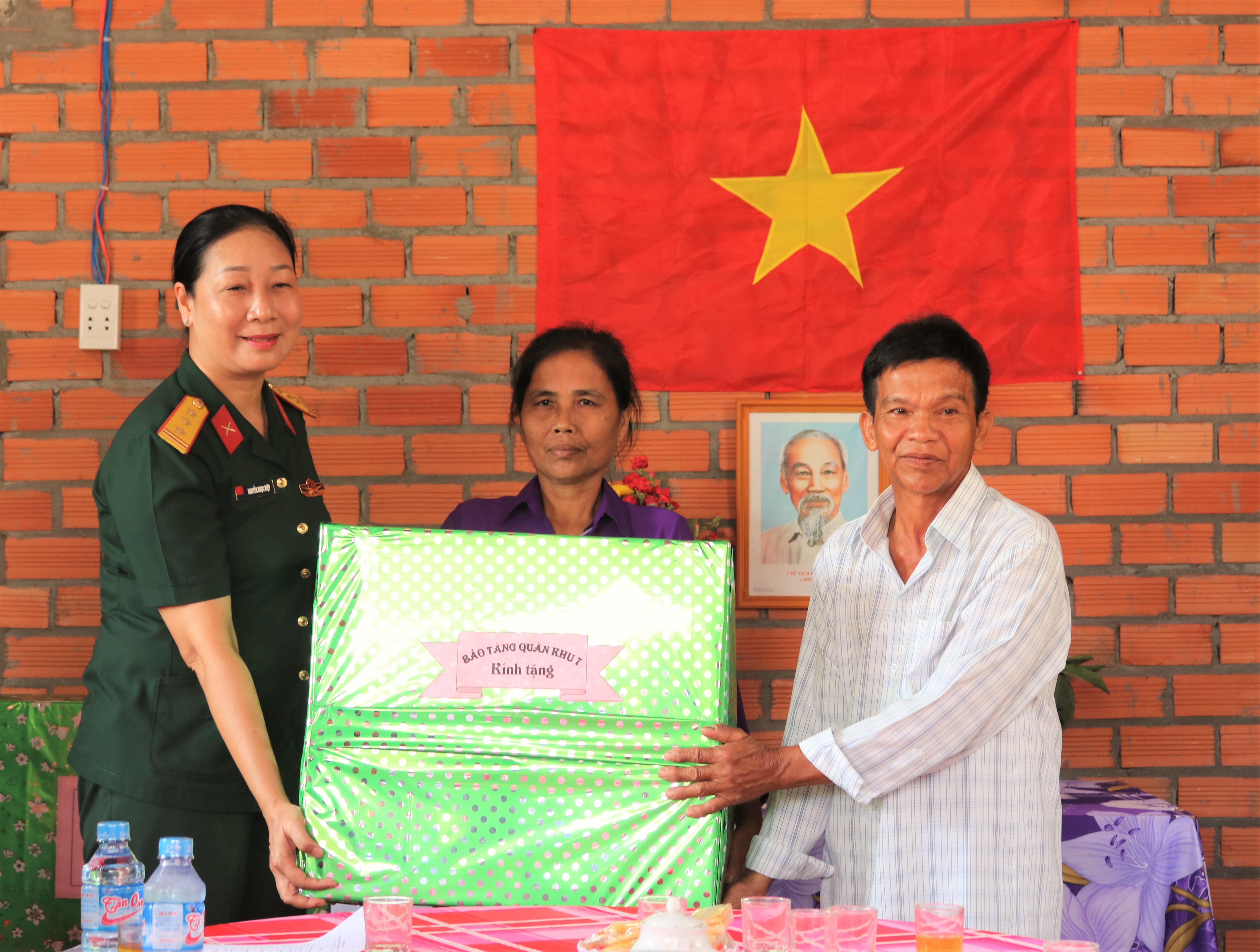 Thượng tá Nguyễn Ngọc Điệp, Giám đốc Bảo tàng Quân khu 7 tặng quà gia đình.