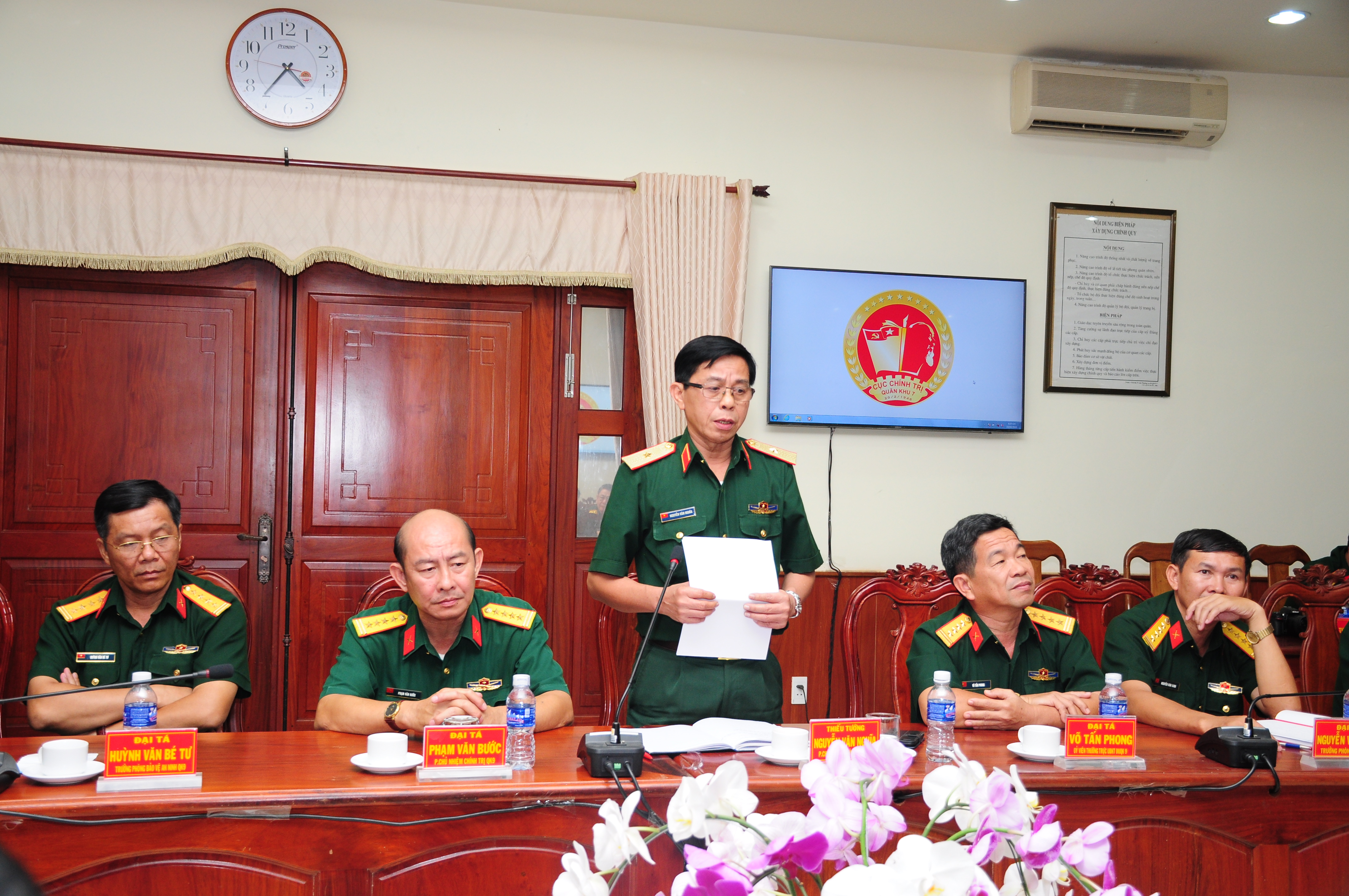 Thiếu tướng Nguyễn Minh Hoàng, Phó Chính ủy Quân khu 7 tham dự buổi giao lưu trao đổi kinh nghiệm hoạt động công tác đảng, công tác chính trị giữa Cục Chính trị Quân khu 7 và Cục Chính trị Quân khu 9 Ảnh: Trần Rô