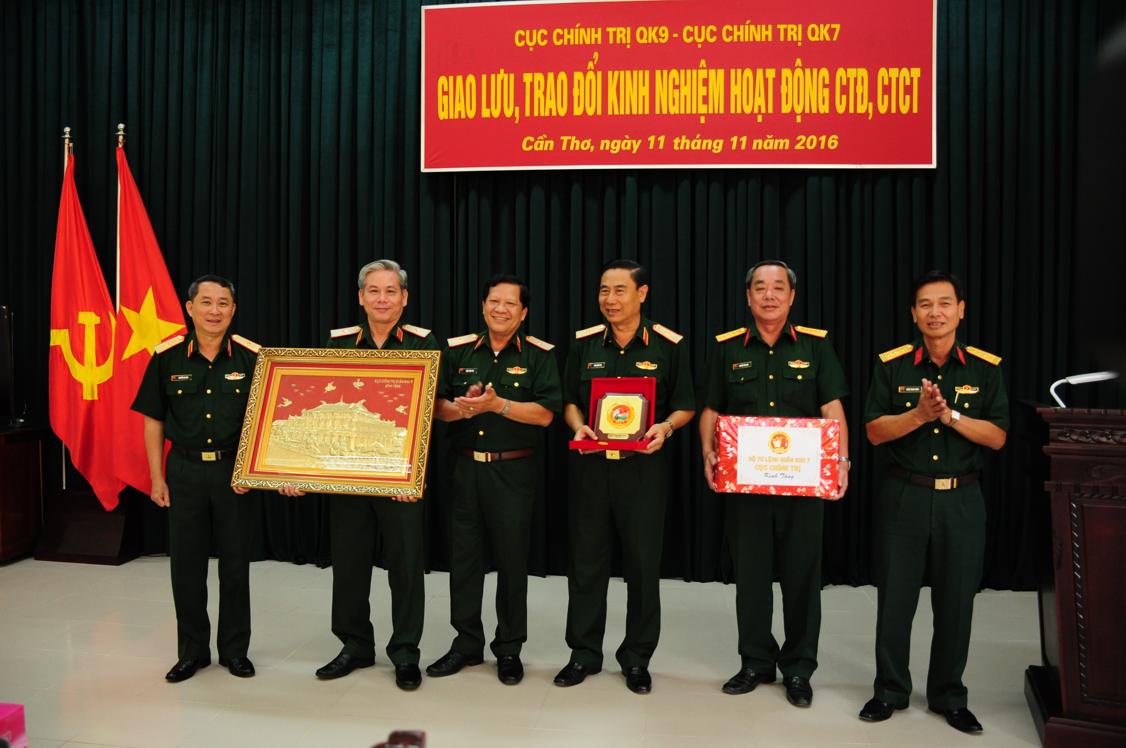 Cục Chính trị Quân khu 7 tặng quà lưu niệm cho Cục Chính trị Quân khu 9