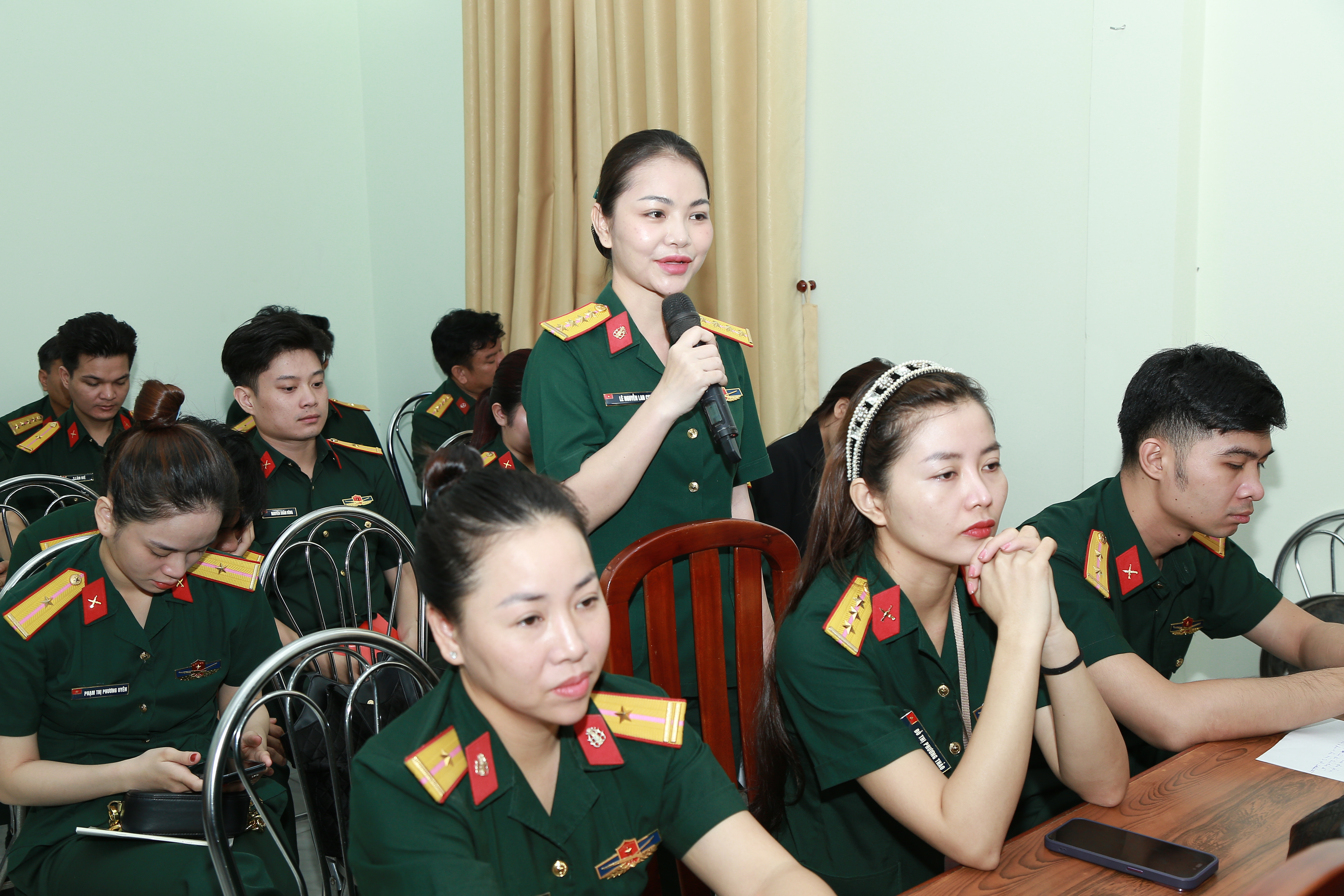 Cán bộ, diễn viên Đoàn Văn công kiến nghị lên thủ trưởng Cục Chính trị Quân khu vấn đề chăm sóc sức khỏe chuyên sâu cho chị em đơn vị.