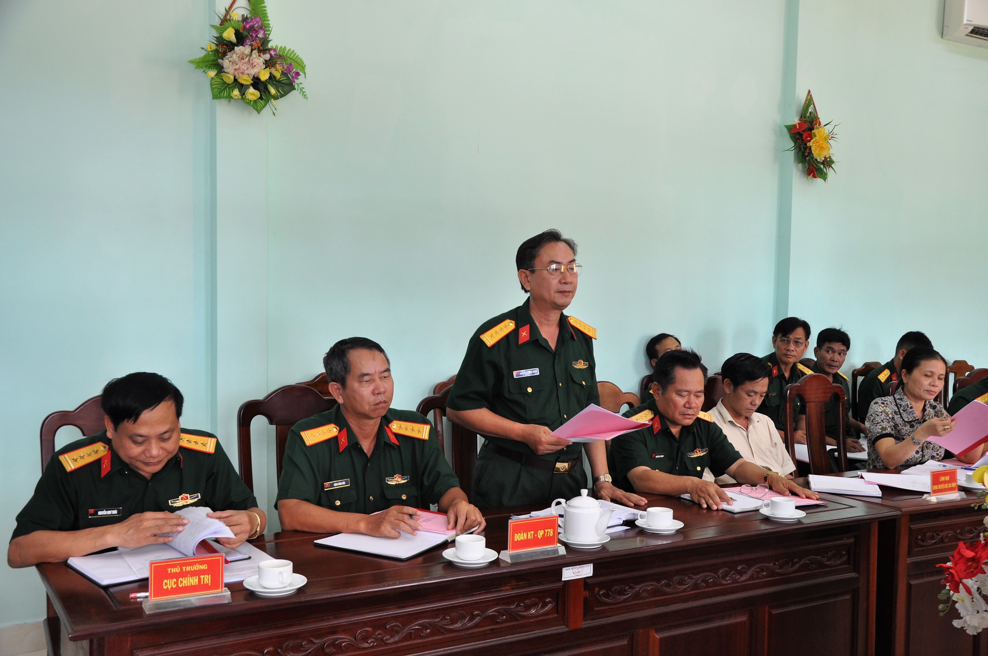 Đại tá Nguyễn Thành Ruân, Chính uỷ Đoàn KT-QP 778 báo cáo kết quả thực hiện công tác dân vận của Đoàn.