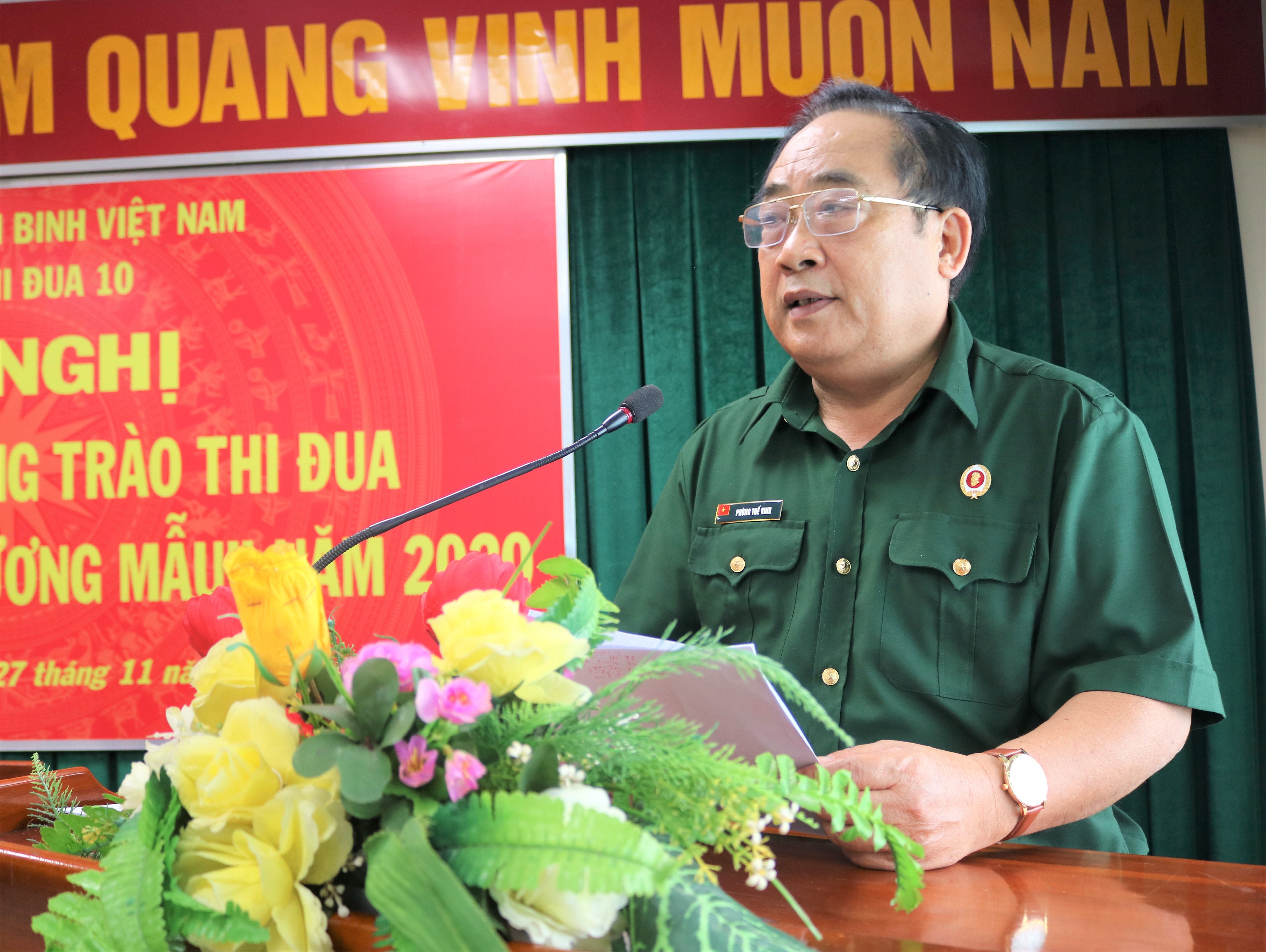 Đồng chí Phùng Thế Vinh, Trưởng Ban Tuyên giáo Hội CCB TP.HCM báo cáo tổng kết PTTĐ tại hội nghị.