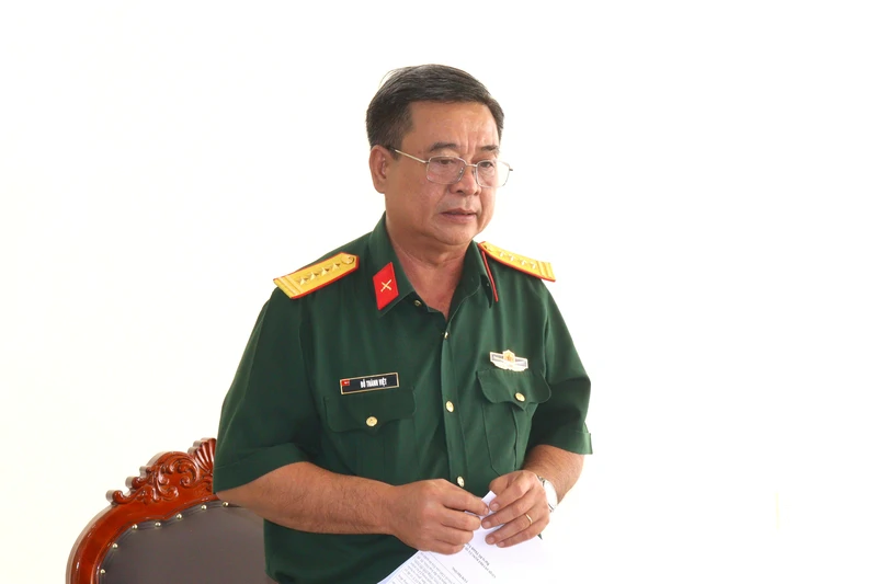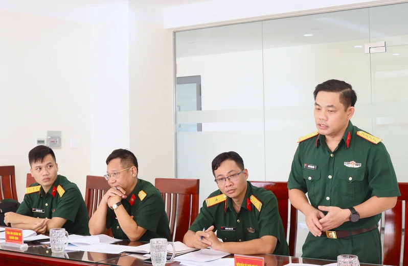 Đại tá Trần Trung Hiếu, Phó Viện trưởng Viện KSQS Quân khu phát biểu tại hội nghị.