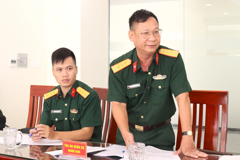 Thượng tá Nguyễn Hồng Phong, Phó Chánh án Tòa án quân sự Quân khu phát biểu thảo luận khen thưởng.