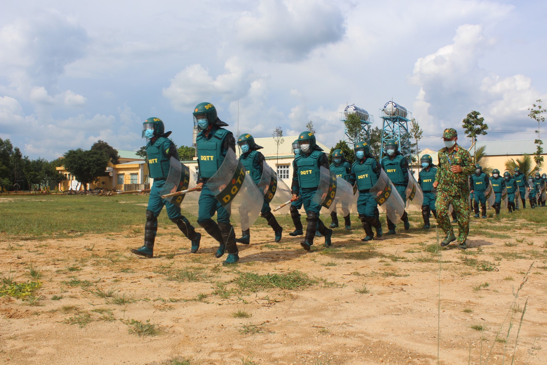 Cán bộ, chiến sĩ Đại đội dân quân luyện tập phòng, chống bạo động. Ảnh: Văn Minh