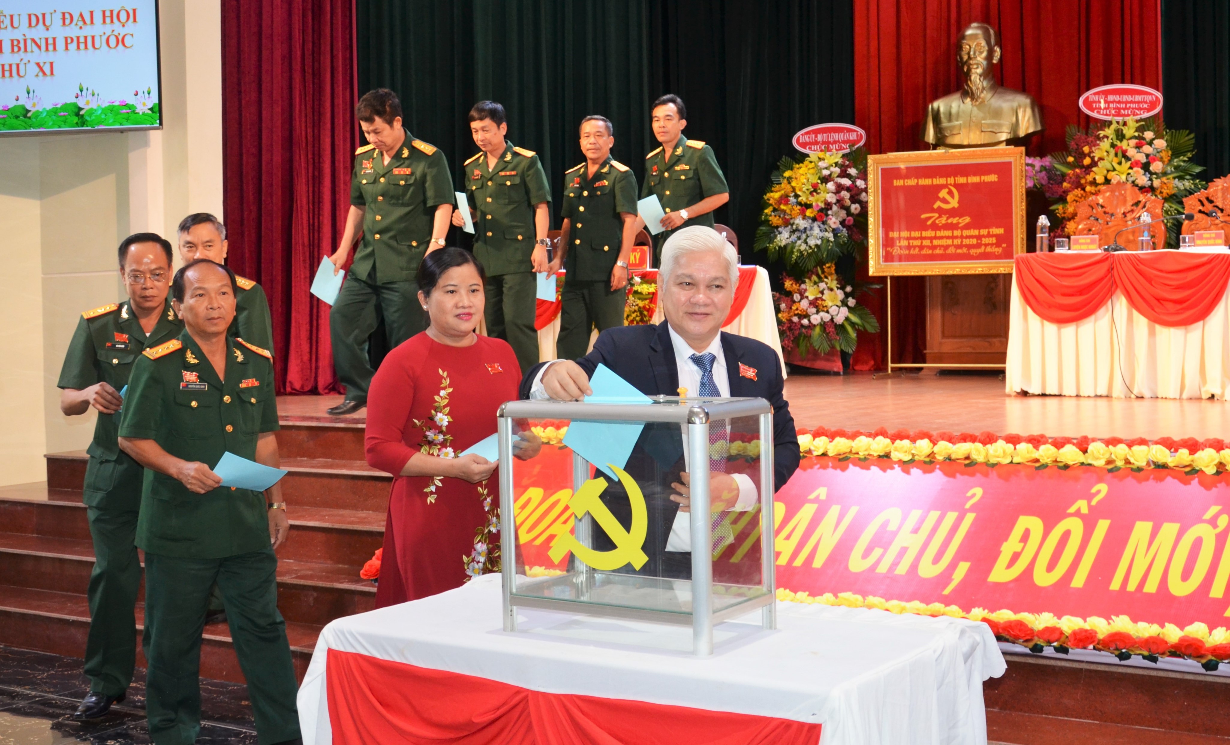 Các đại biểu bỏ phiếu bầu Ban chấp hành Đảng bộ Quân sự tỉnh nhiệm kỳ 2020 - 2025