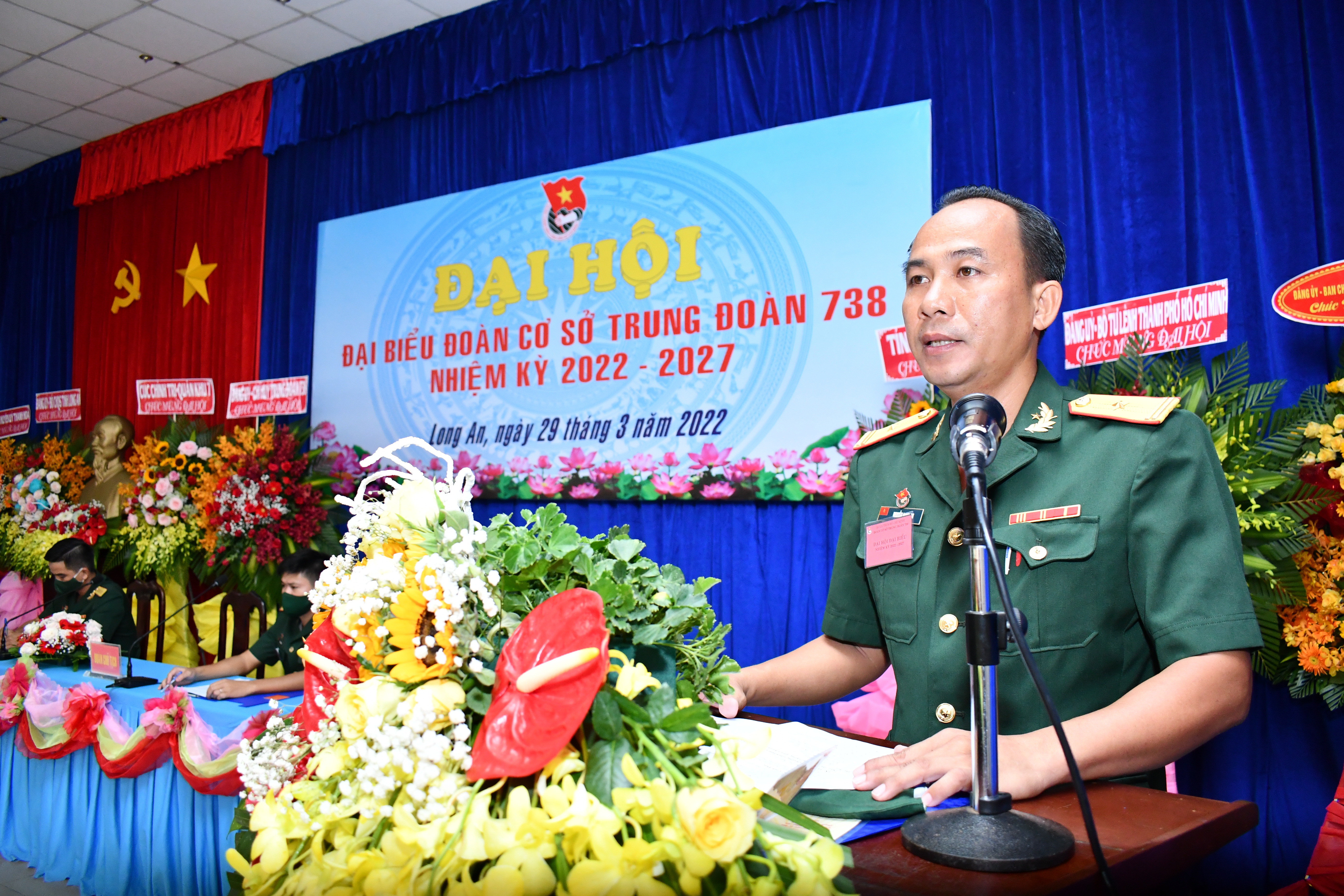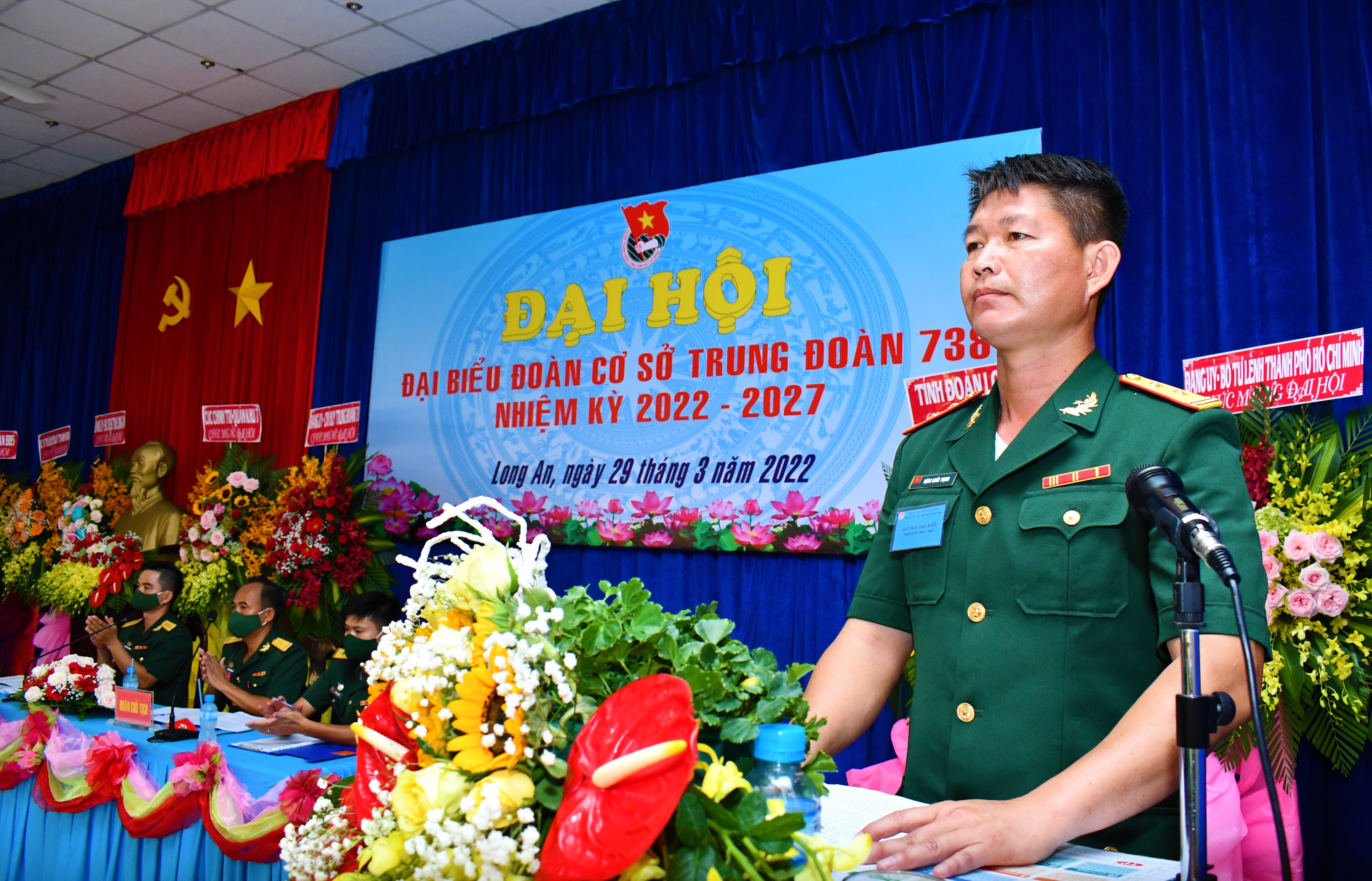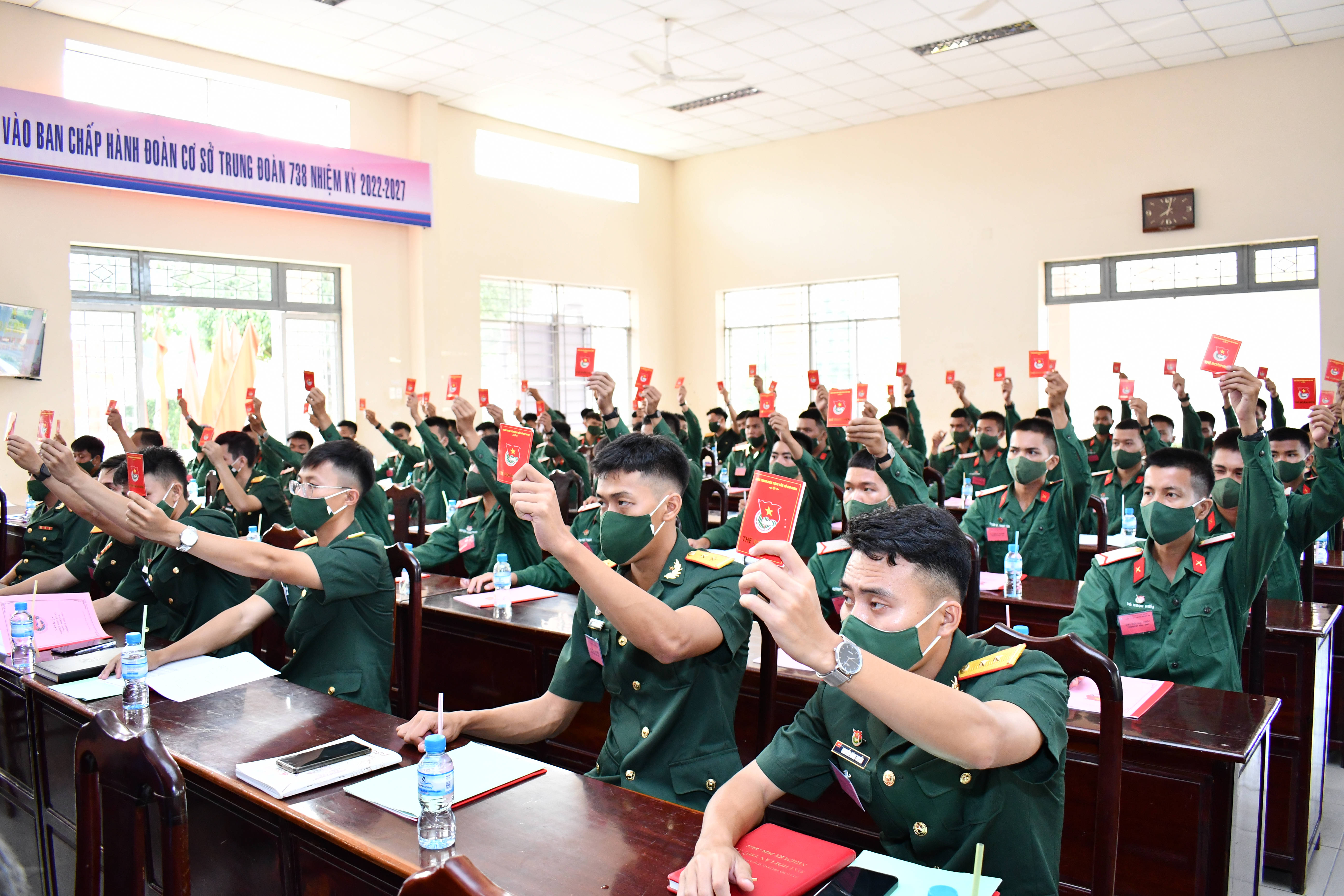 Trên tinh thần “Đoàn kết, trí tuệ, xung kích, sáng tạo, quyết thắng”, đại hội đã làm việc nghiêm túc, khẩn trương, bầu Ban Chấp hành Đoàn cơ sở Trung đoàn 738 nhiệm kỳ 2022-2027 gồm 7 đồng chí. Đại hội đã bầu đồng chí Nguyễn Văn An, Chính trị viên Tiểu đoàn 1, Trung đoàn 738 trúng cử Bí thư Đoàn cơ sở Trung đoàn nhiệm kỳ 2022-2027 và bầu 35 đại biểu chính thức, 3 đại biểu dự khuyết đi dự Đại hội đại biểu Đoàn TNCS Hồ Chí Minh LLVT tỉnh lần thứ X, nhiệm kỳ 2022-2027.