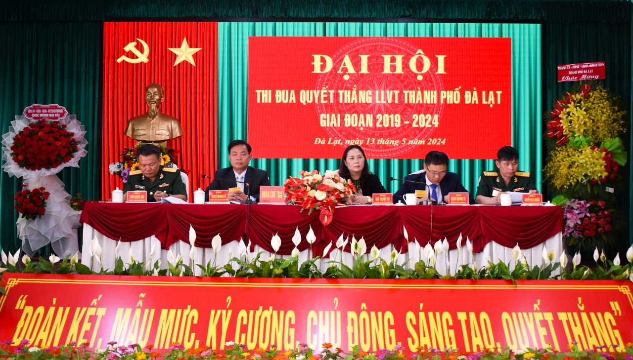 (QK7 Online) - Sáng 13/5, Lực lượng vũ trang (LLVT) thành phố Đà Lạt, tỉnh Lâm Đồng tổ chức thành công Đại hội Thi đua Quyết thắng giai đoạn 2019 - 2024. Dự Đại hội có Đại tá Nguyễn Văn Sơn, Chính ủy CHQS tỉnh; lãnh đạo Thành ủy, HĐND, UBND, UBMTTQ Việt Nam thành phố.