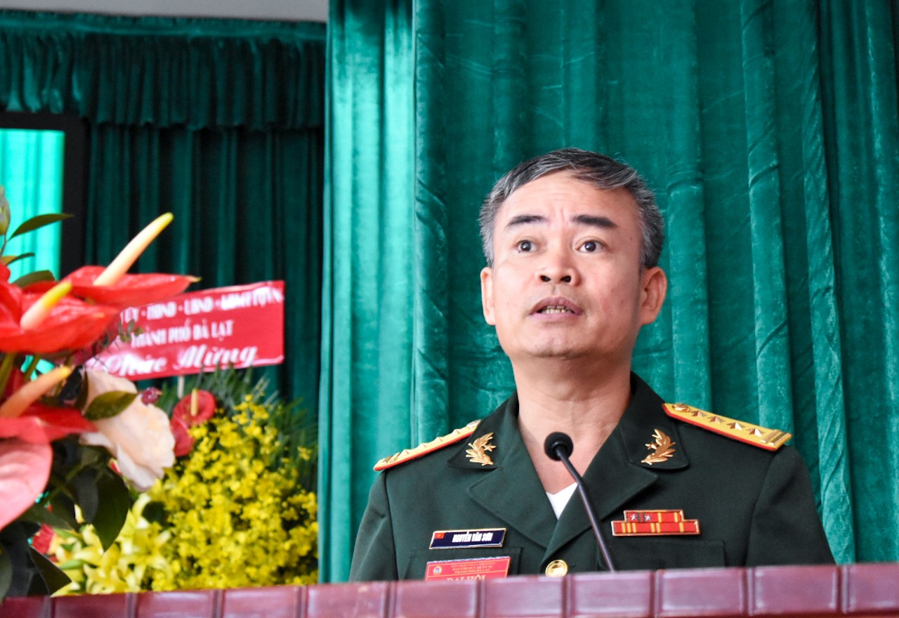 Đại tá Nguyễn Văn Sơn, Chính ủy Bộ CHQS tỉnh Lâm Đồng phát biểu chỉ đạo tại Đại hội.