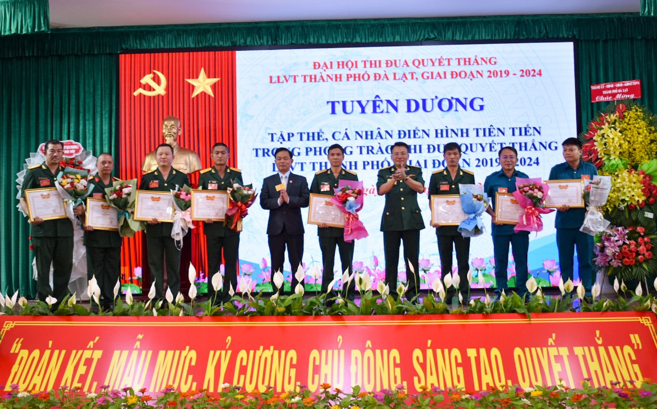 Phát biểu chỉ đạo tại Đại hội, Đại tá Nguyễn Văn Sơn, Chính ủy Bộ CHQS tỉnh biểu dương, ghi nhận và chúc mừng kết quả, thành tích mà LLVT thành phố Đà Lạt đạt được trong Phong trào TĐQT giai đoạn 2019 - 2024. Đồng chí Chính ủy Bộ CHQS tỉnh đề nghị LLVT thành phố thời gian tới cần khắc phục những hạn chế, khuyết điểm; đồng thời, phát huy những ưu điểm, thành tích, kết quả đạt được để phong trào thi đua thực sự sôi nổi, rộng khắp. Trong đó, LLVT thành phố cần tập trung quán triệt sâu sắc các nghị quyết, chỉ thị, kế hoạch, nội dung, chỉ tiêu thi đua của Đảng ủy, Bộ Tư lệnh Quân khu, Tỉnh ủy, UBND tỉnh, Đảng ủy, Bộ CHQS tỉnh để triển khai công tác TĐKT và Phong trào TĐQT đạt kết quả cao nhất. Tập trung tham mưu cấp ủy, chính quyền địa phương lãnh đạo, chỉ đạo xây dựng nền quốc phòng toàn dân, thế trận chiến tranh Nhân dân, xây dựng LLVT thành phố vững mạnh toàn diện “Mẫu mực, tiêu biểu”.