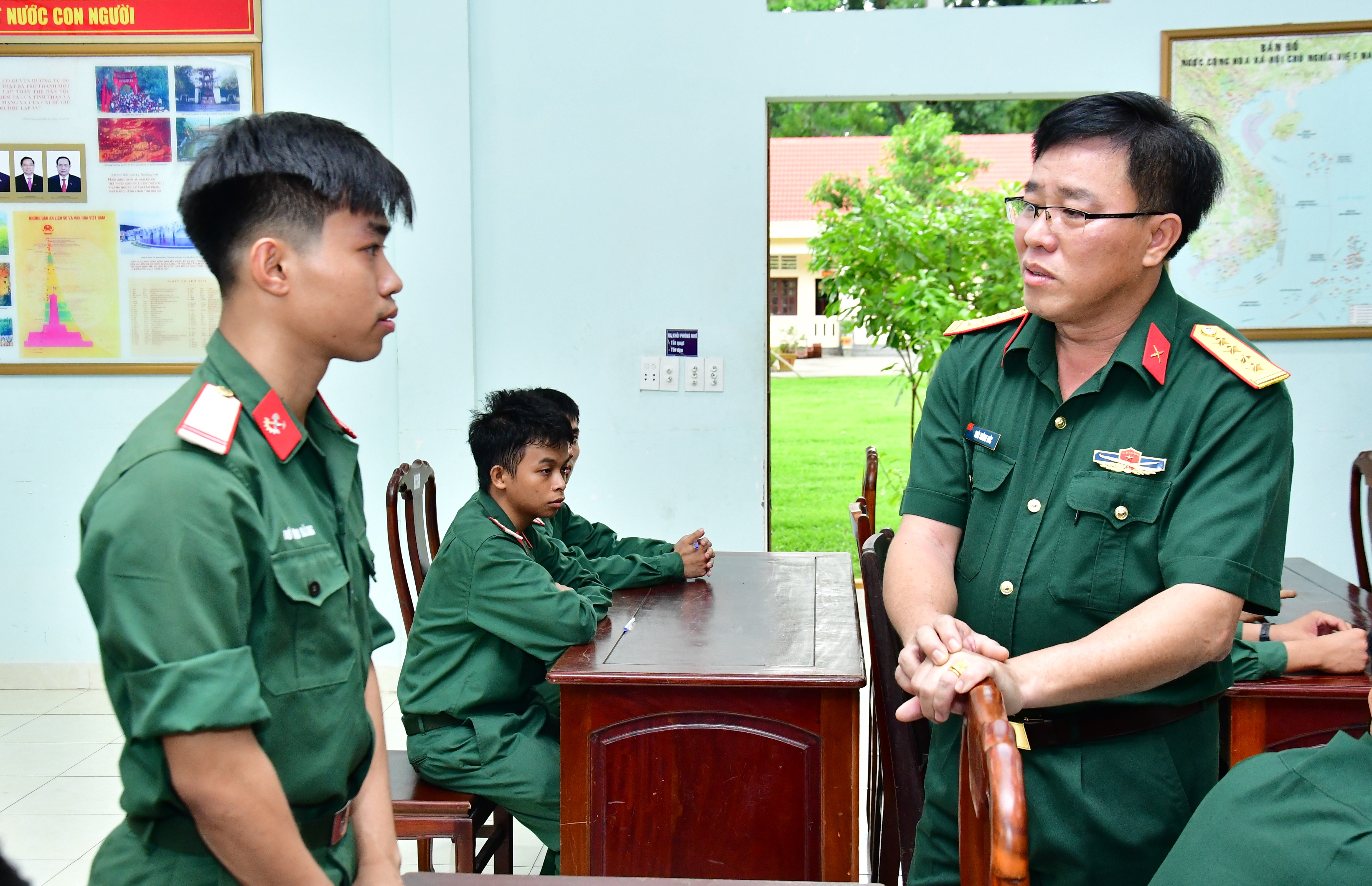 Đại tá Thái Thành Đức kiểm tra nhận thức của chiến sĩ Tiểu đoàn 14, Lữ đoàn 25.