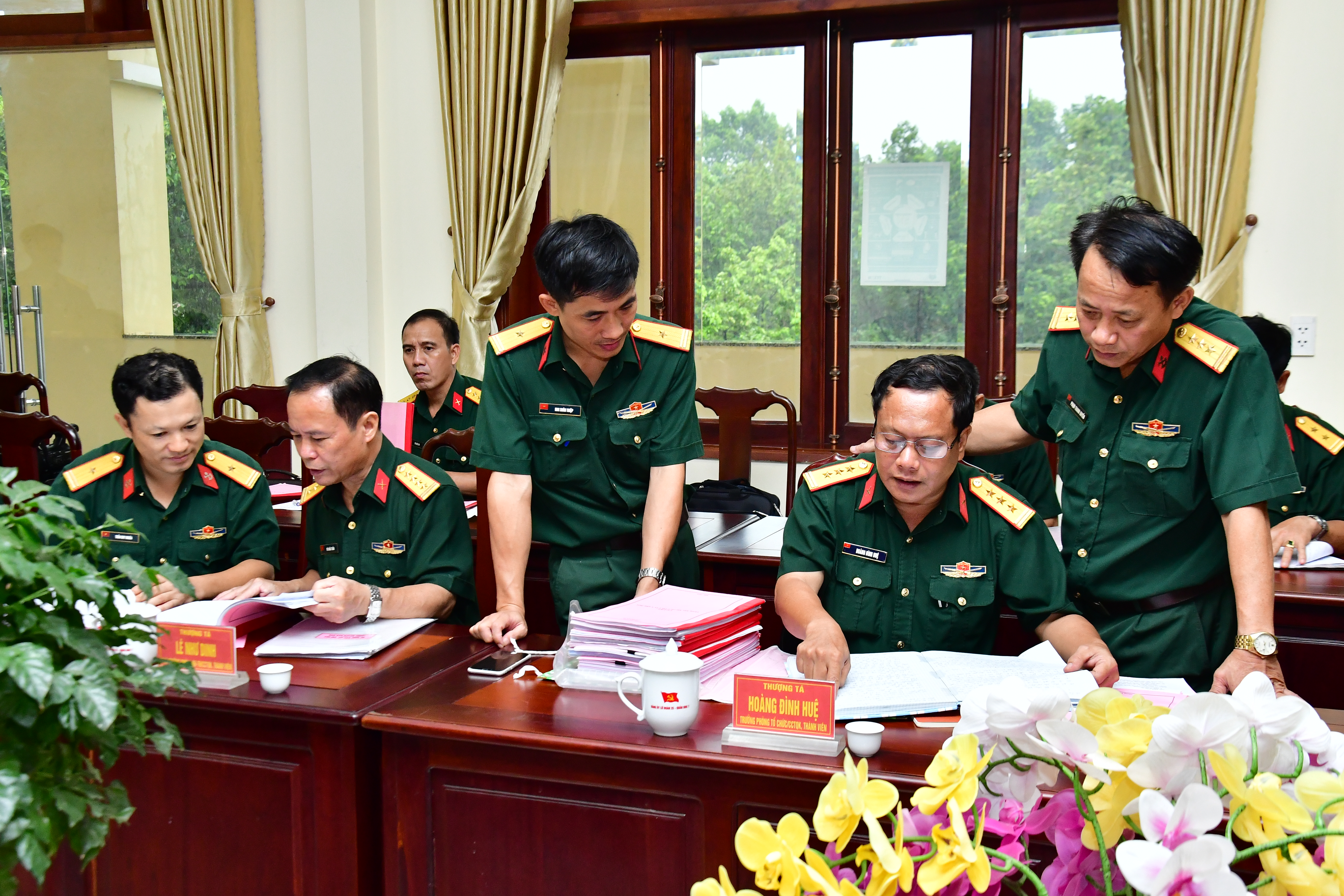 Thành viên đoàn công tác Cục Chính trị Quân khu kiểm tra văn kiện CTĐ, CTCT của Lữ đoàn 25.