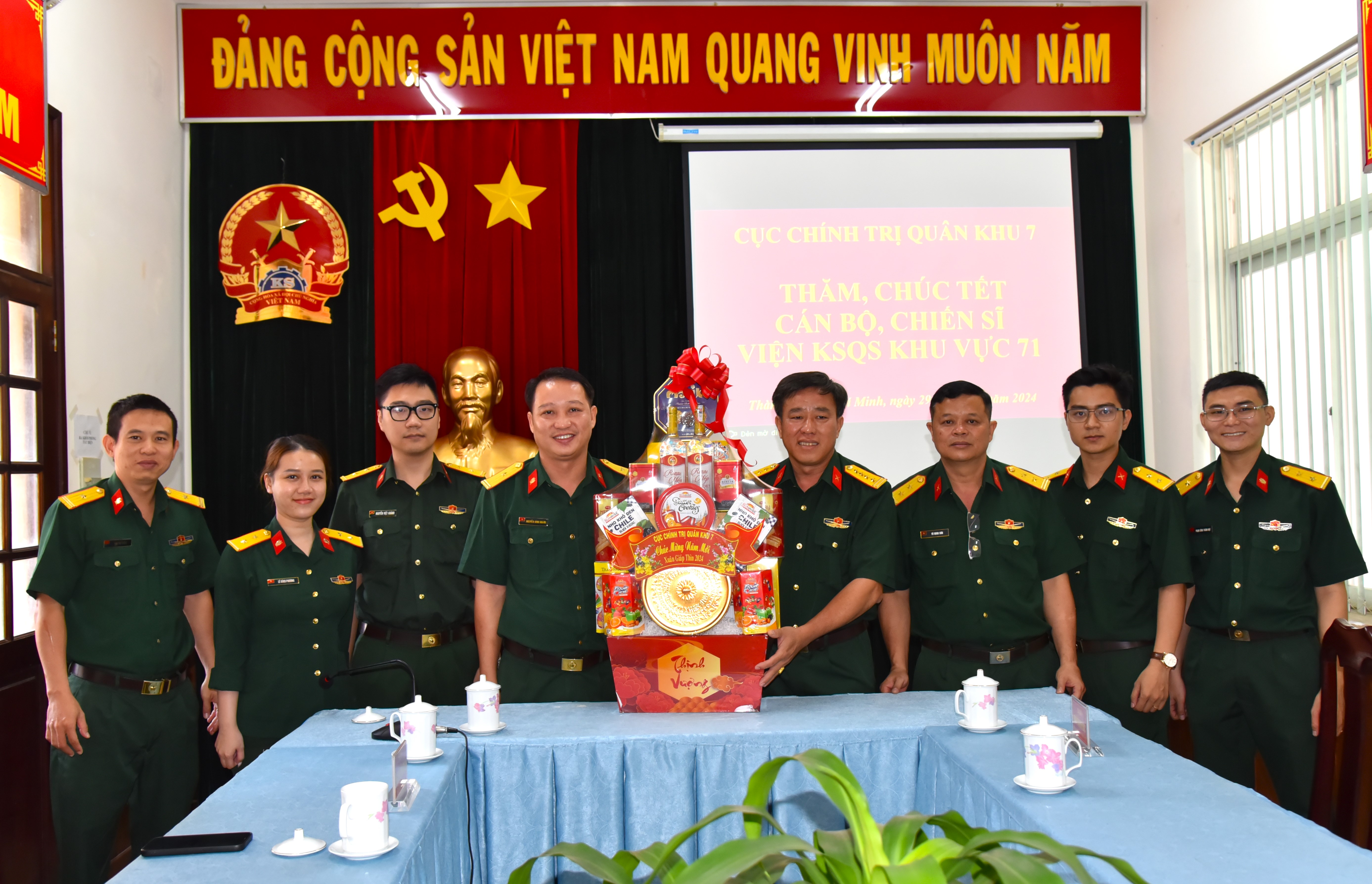 Thăm, chúc năm mới cán bộ, chiến sĩ Viện Kiểm sát Quân sự khu vực 71; Tòa án Quân sự khu vực, đồng chí Phó Chủ nhiệm Chính trị Quân khu mong muốn các cơ quan tổ chức tốt hoạt động Tết, đảm bảo cho cán bộ, nhân viên đón tết, vui xuân, an toàn, hoàn thành tốt chức trách nhiệm vụ được giao.