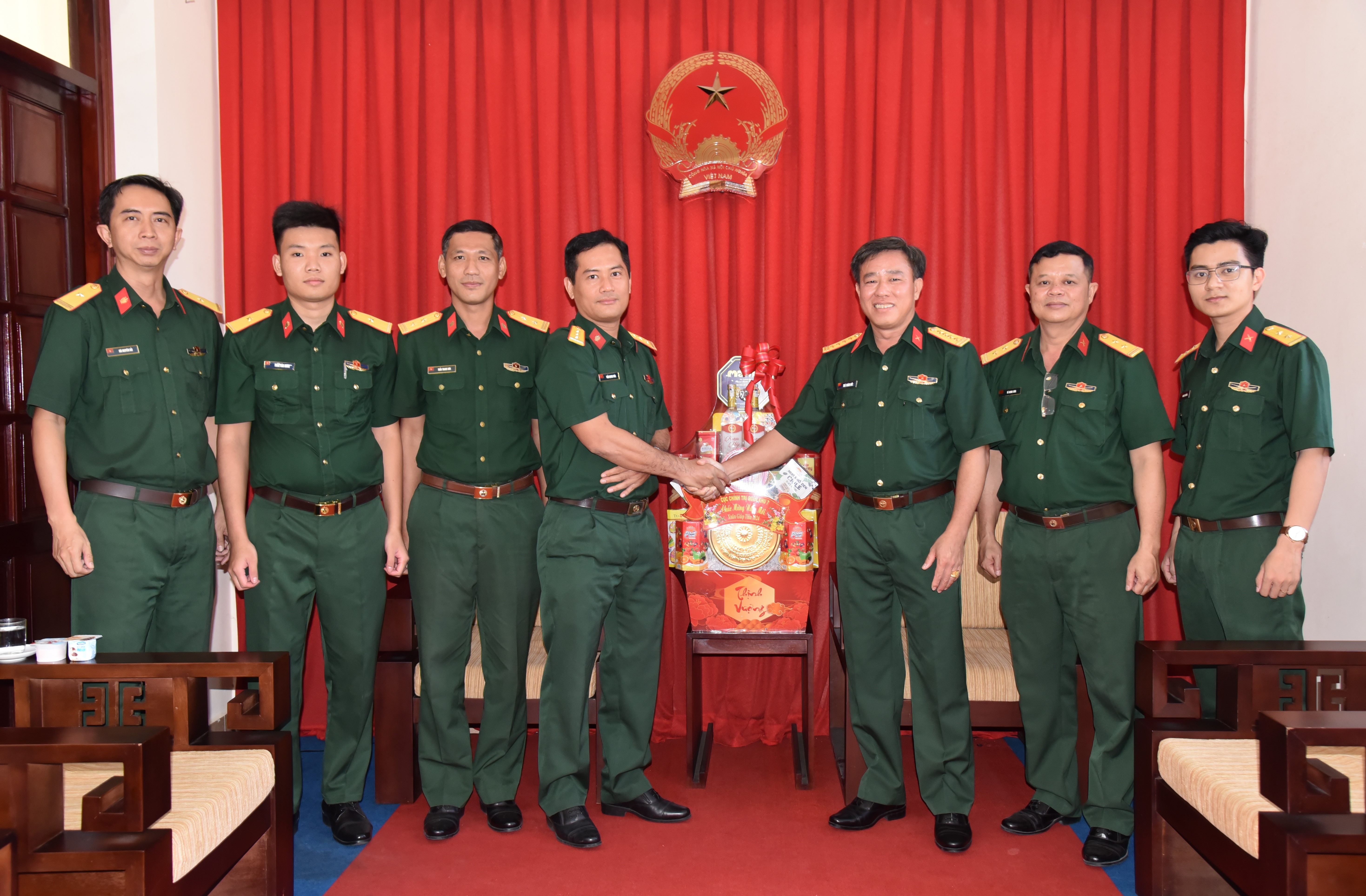 Đồng chí Phó Chủ nhiệm Chính trị Quân khu chúc mừng năm mới Tòa án Quân sự khu vực.