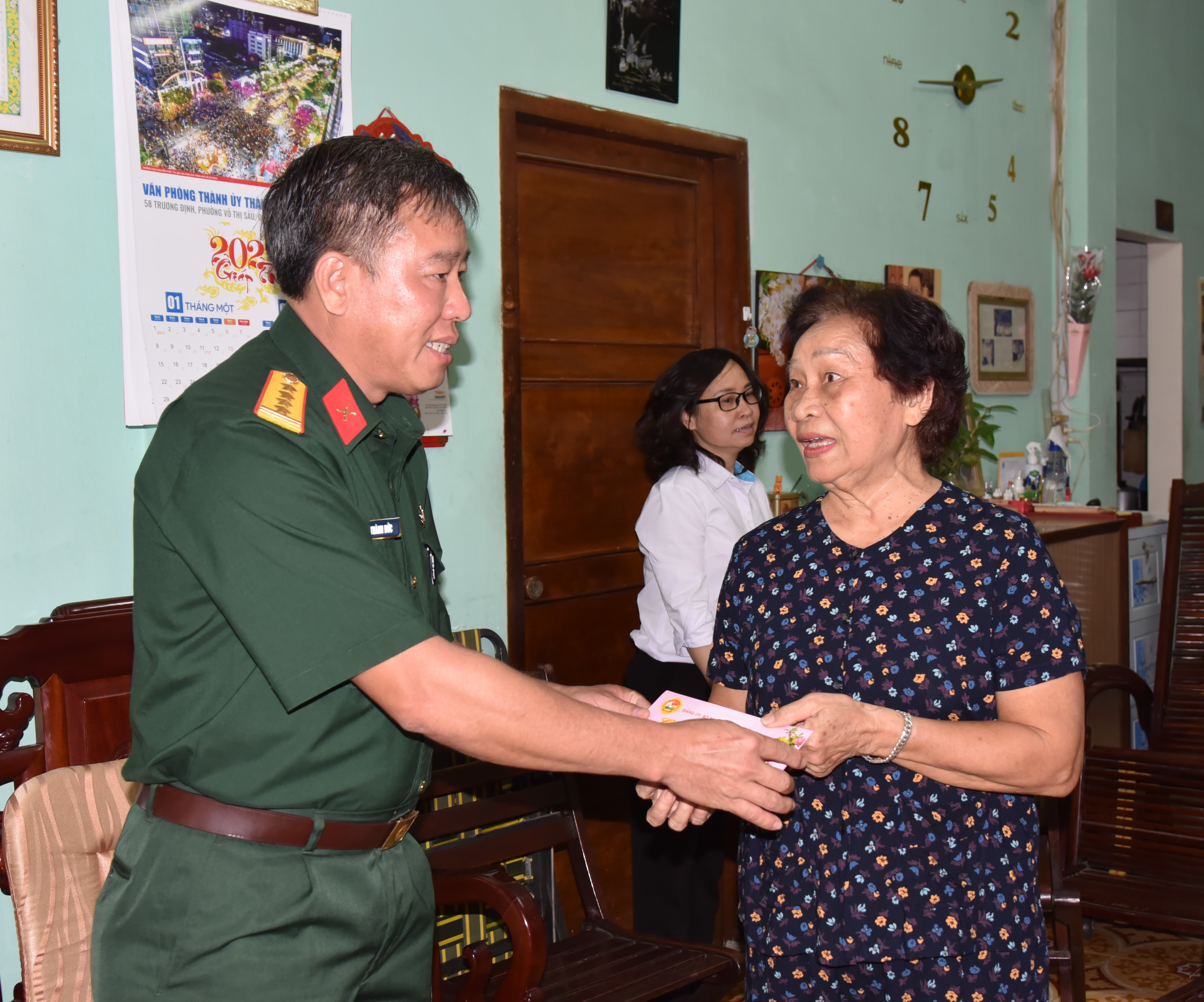 Đồng chí Phó Chủ nhiệm Chính trị Quân khu chúc Tết gia đình đồng chí Trần Xuân Độ.