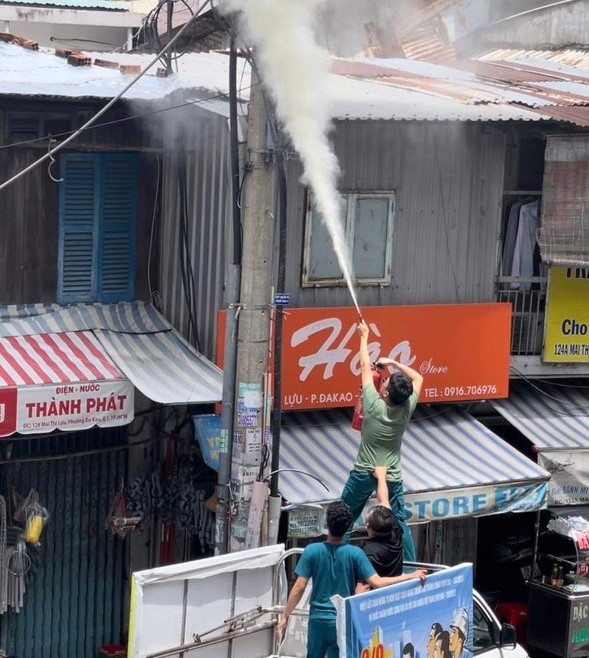 Dân quân phường Đa Kao tham gia chữa cháy.