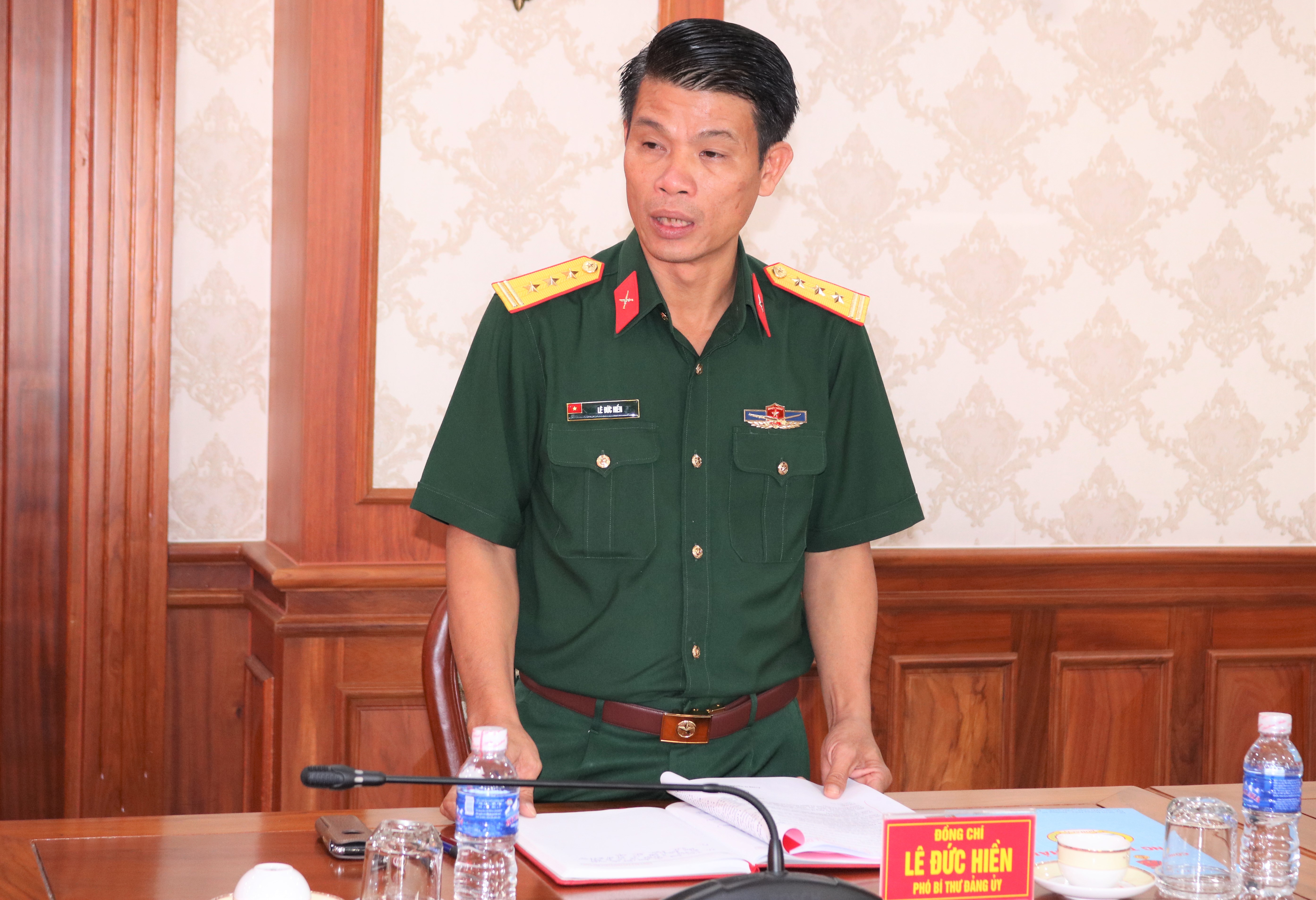 Thượng tá Lê Đức Hiền, Phó Bí thư Đảng ủy, Tổng Giám đốc công ty phát biểu ý kiến thảo luận.