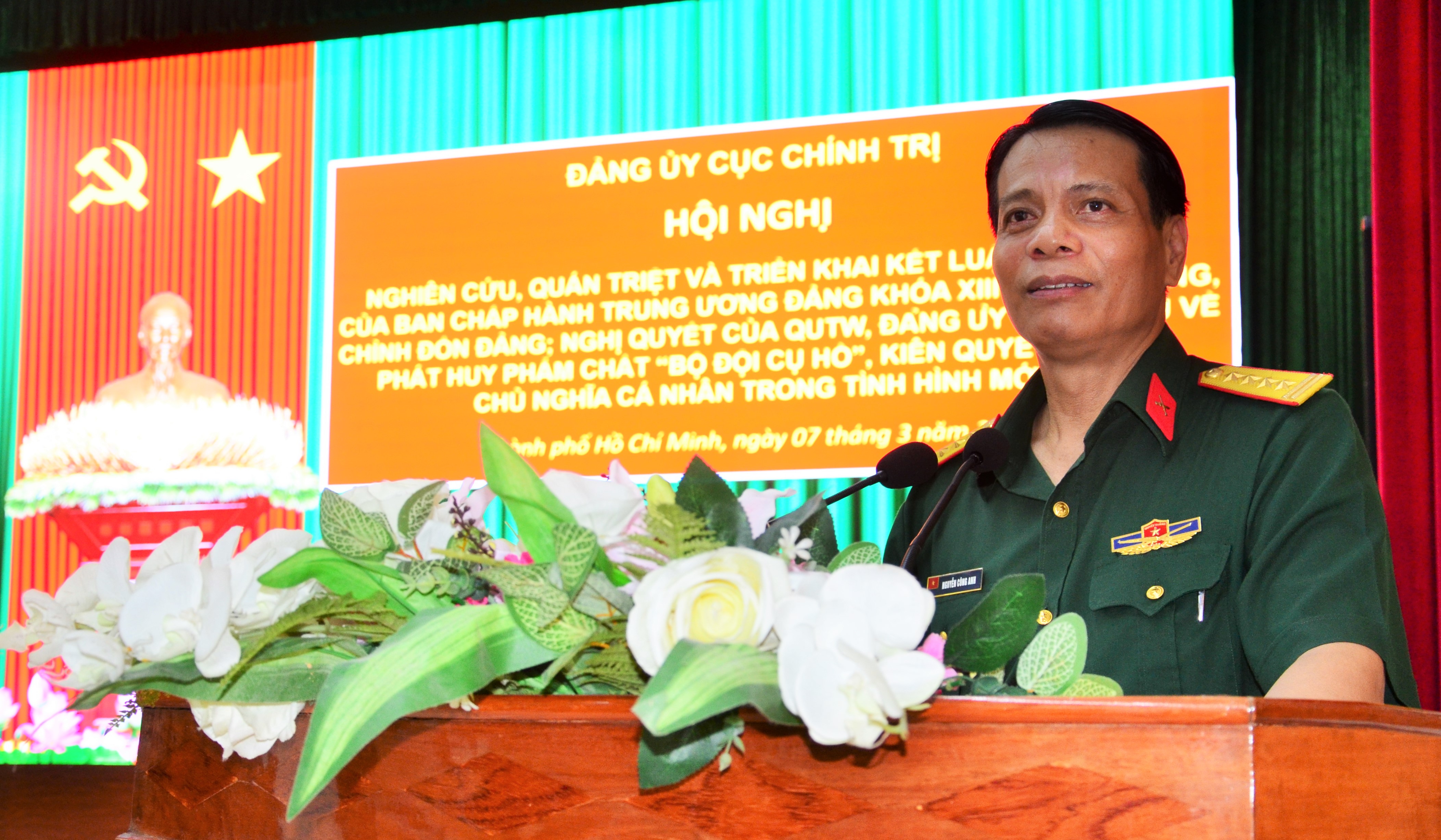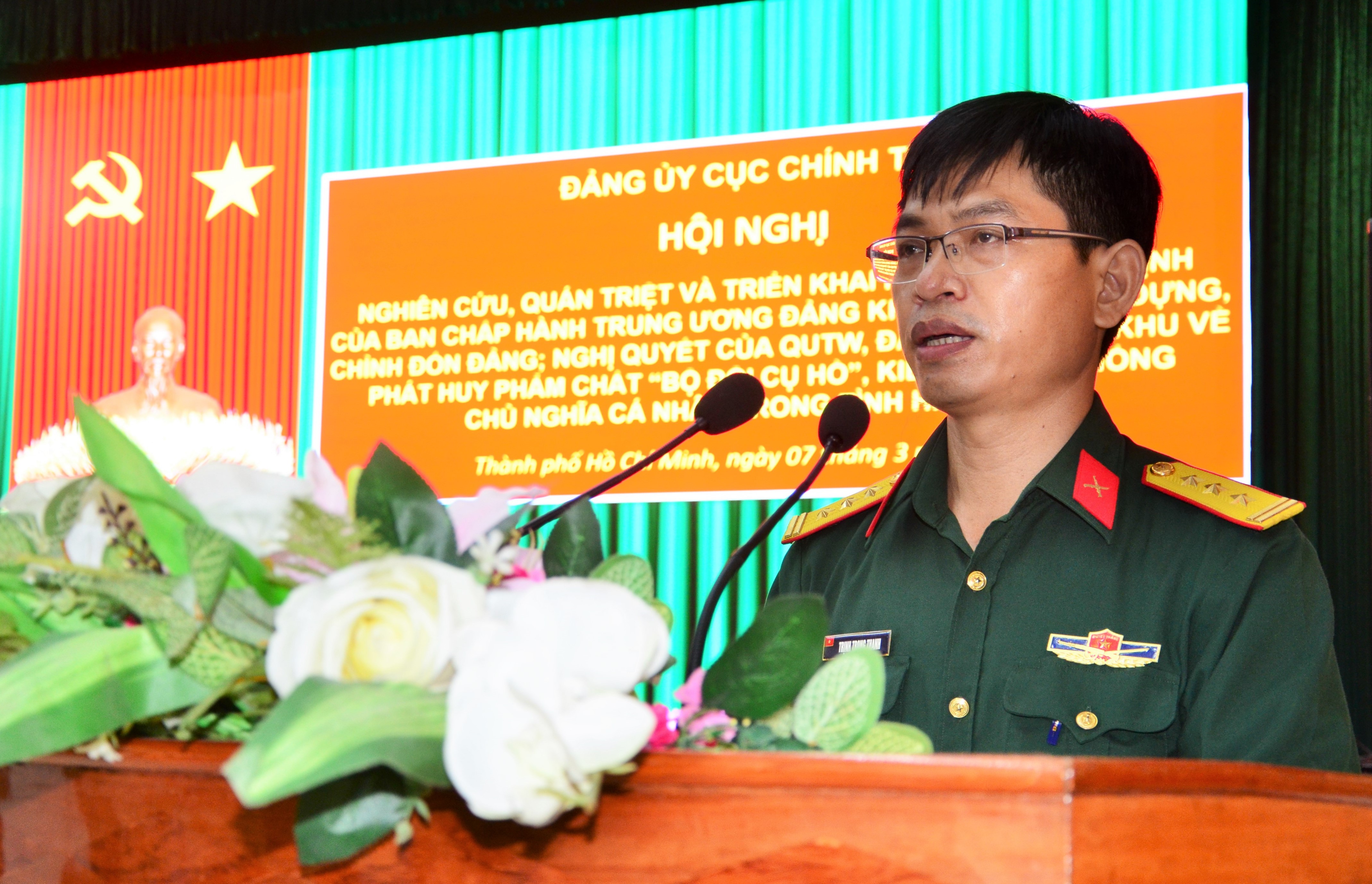 Thượng tá Trịnh Trọng Thanh, Phó trưởng phòng Kế hoạch tổng hợp giới thiệu Nghị quyết số 847 của Quân ủy Trung ương về “Phát huy phẩm chất Bộ đội Cụ Hồ, kiên quyết chống chủ nghĩa cá nhân trong tình hình mới”.
