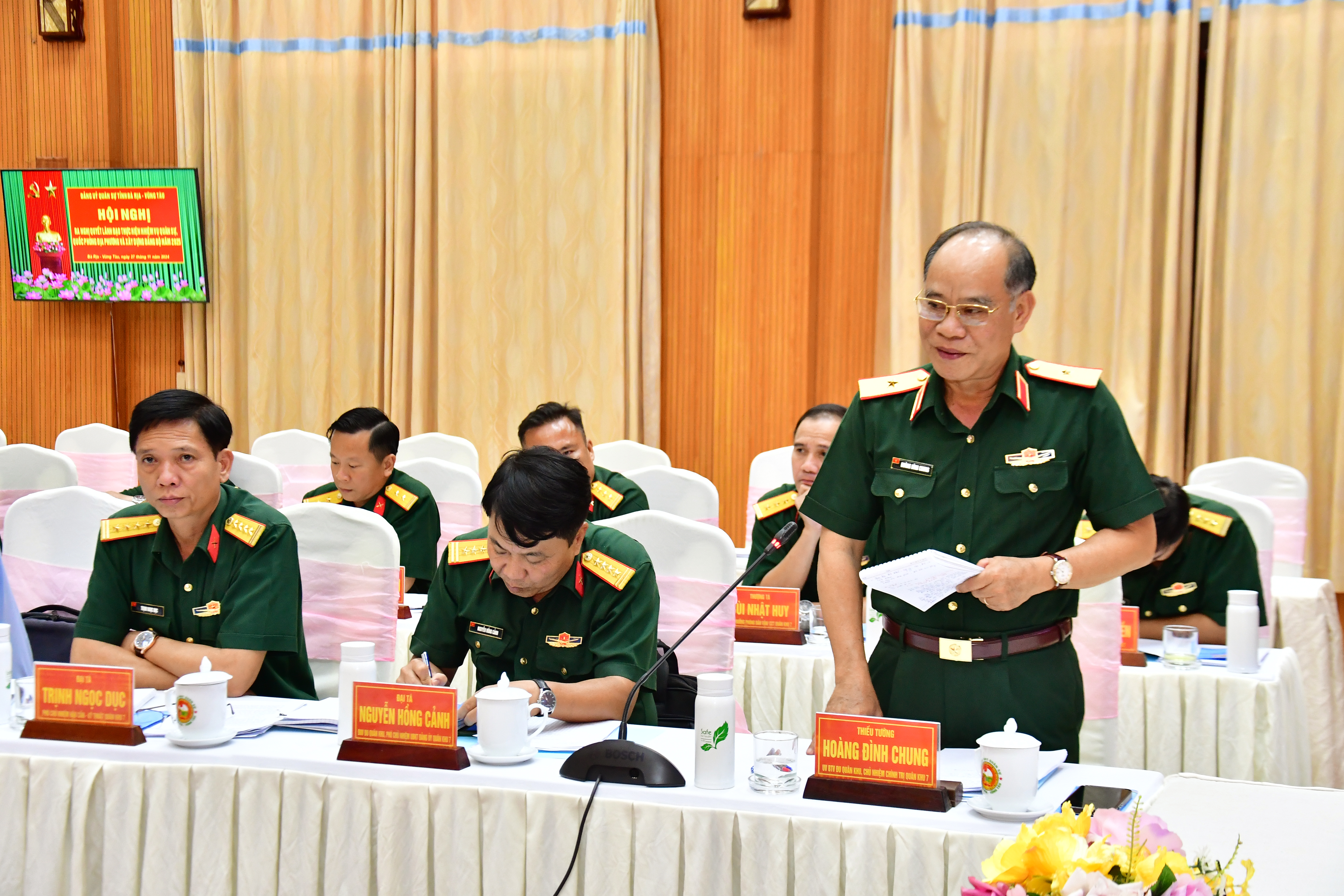 Thiếu tướng Hoàng Đình Chung, Ủy viên Ban Thường vụ Đảng ủy Quân khu 7, Chủ nhiệm Chính trị Quân khu dự và chỉ đạo hội nghị. Dự hội nghị có Đại tá Nguyễn Hồng Cảnh, Phó Chủ nhiệm UBKT Đảng ủy Quân khu; Đại tá Trịnh Ngọc Dục, Phó Chủ nhiệm Hậu cần – Kỹ thuật Quân khu; đại diện các cơ quan chức năng Quân khu và lãnh đạo các huyện, thành phố trên địa bàn tỉnh.