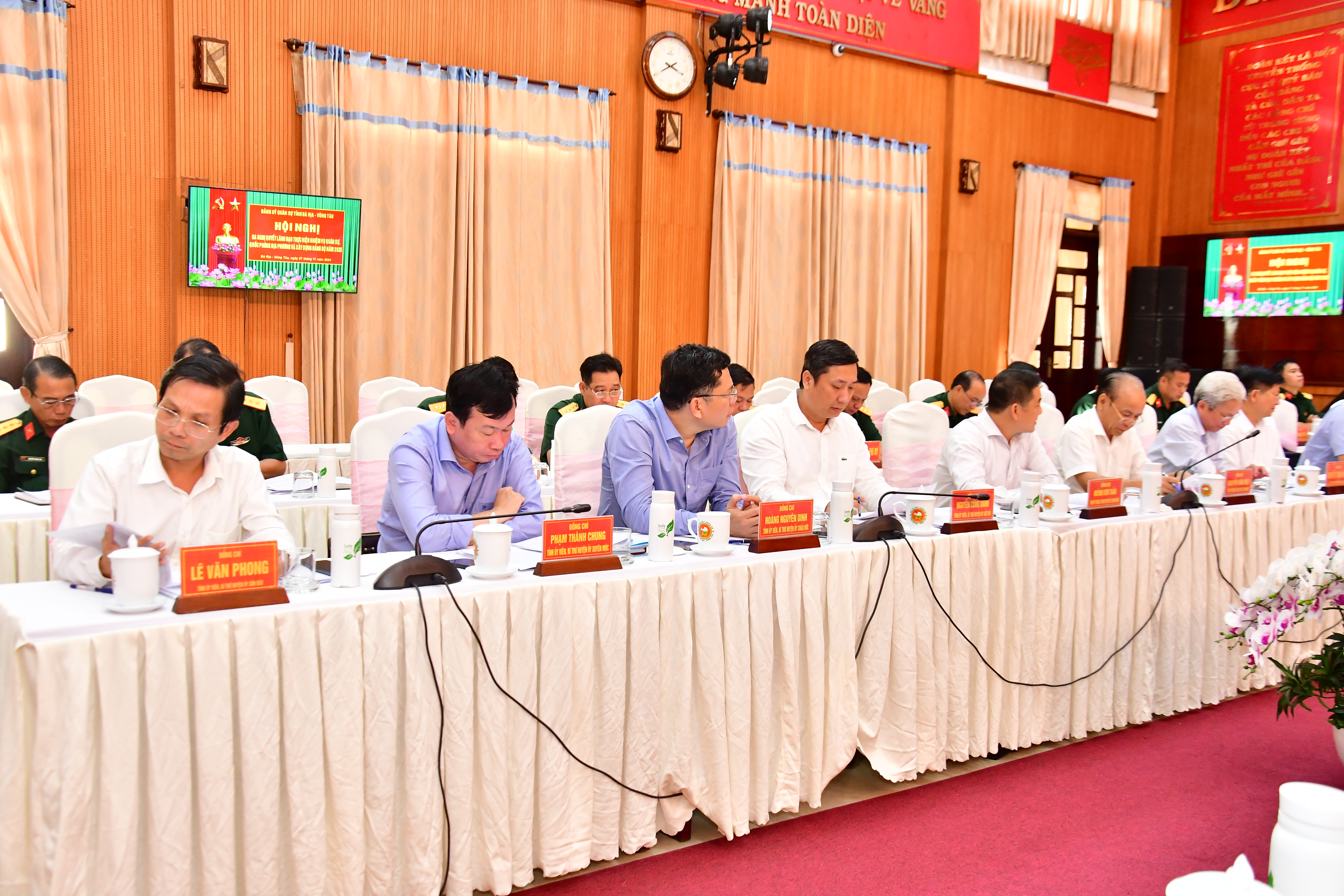 Các đồng chí trong Đảng ủy, Bộ CHQS tỉnh Bà Rịa - Vũng Tàu dự hội nghị.