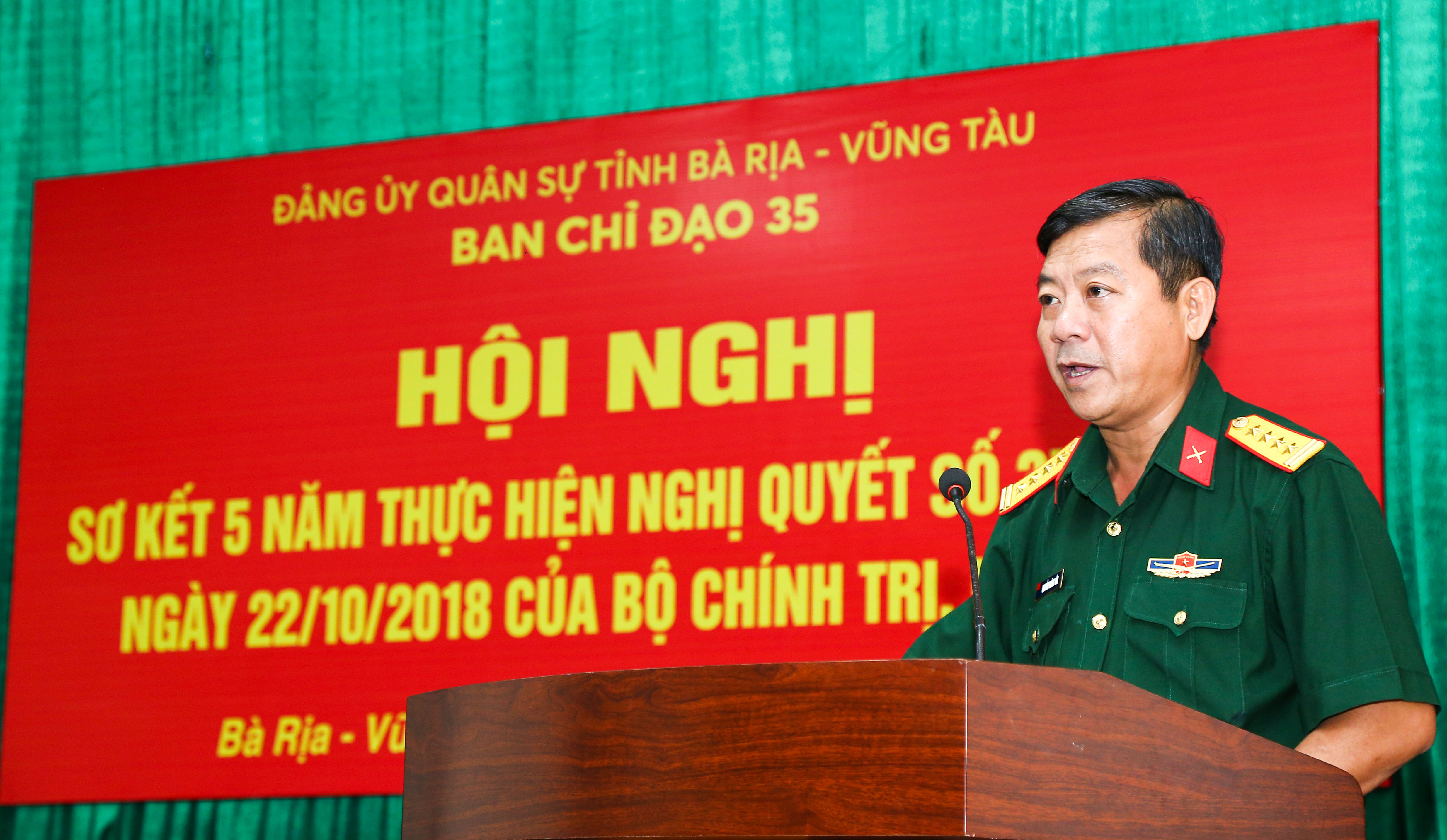 (QK7 Online) – Ngày 2-6, Đảng ủy Quân sự tỉnh Bà Rịa - Vũng Tàu tổ chức Hội nghị sơ kết 5 năm thực hiện Nghị quyết số 35-NQ/TW ngày 22/10/2018 của Bộ Chính trị. Đại tá Nguyễn Như Trúc, Phó Chủ nhiệm Chính trị Quân khu đến dự và phát biểu chỉ đạo.