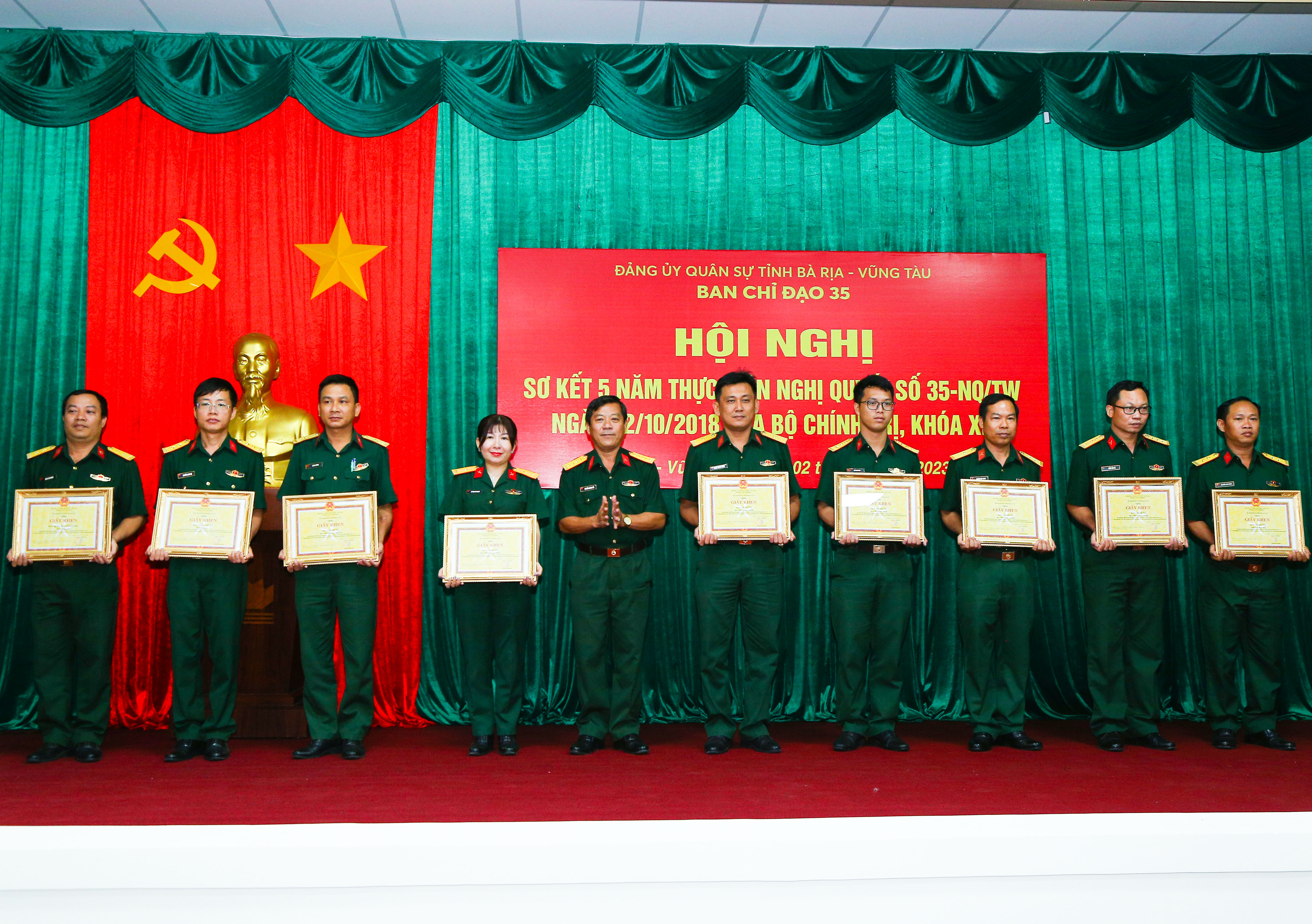 Dịp này, Bộ CHQS tỉnh Bà Rịa - Vũng Tàu khen thưởng 10 tập thể và 28 cá nhân đạt thành tích xuất sắc trong 5 năm thực hiện Nghị quyết số 35-NQ/TW của Bộ Chính trị.