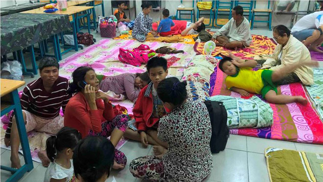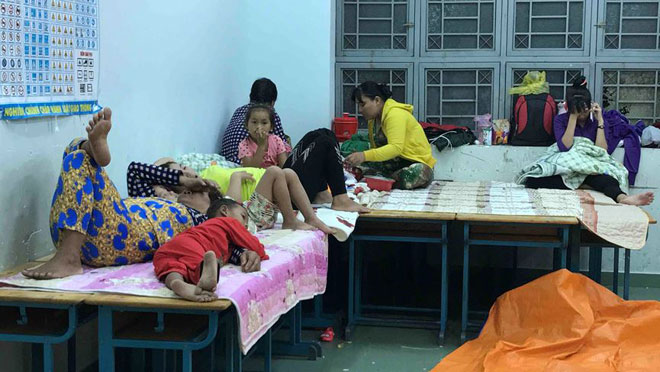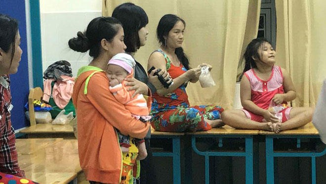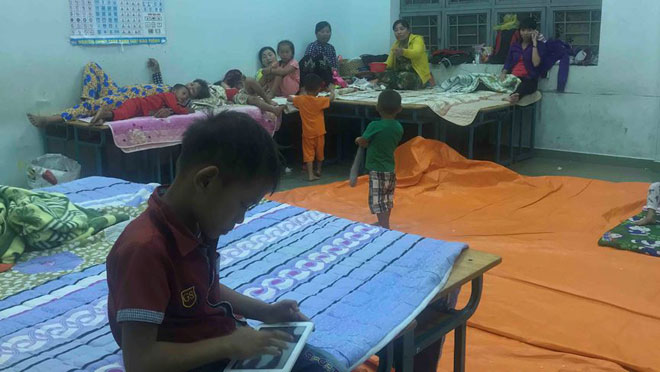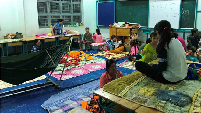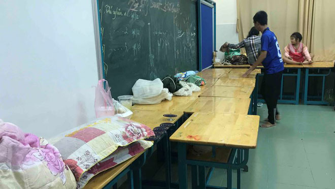 Số lượng người sơ tán đông nên lực lượng chức năng tận dụng các công trình kiên cố như trường học để người dân cư ngụ.
