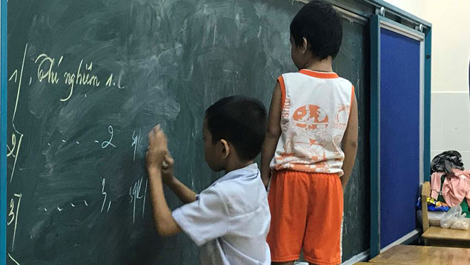 Nhiều trẻ em thích thú với bảng và phấn viết