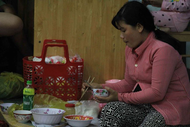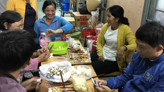 Nhiều người mang theo đồ ăn chuẩn bị sẵn để ăn tạm qua đêm cư ngụ tại điểm tránh bão số 9.