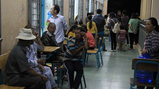 Tối 24/11, rất đông người sơ tán đến trường THCS thị trấn Cần Thạnh để cư ngụ trước khi bão vào bờ.