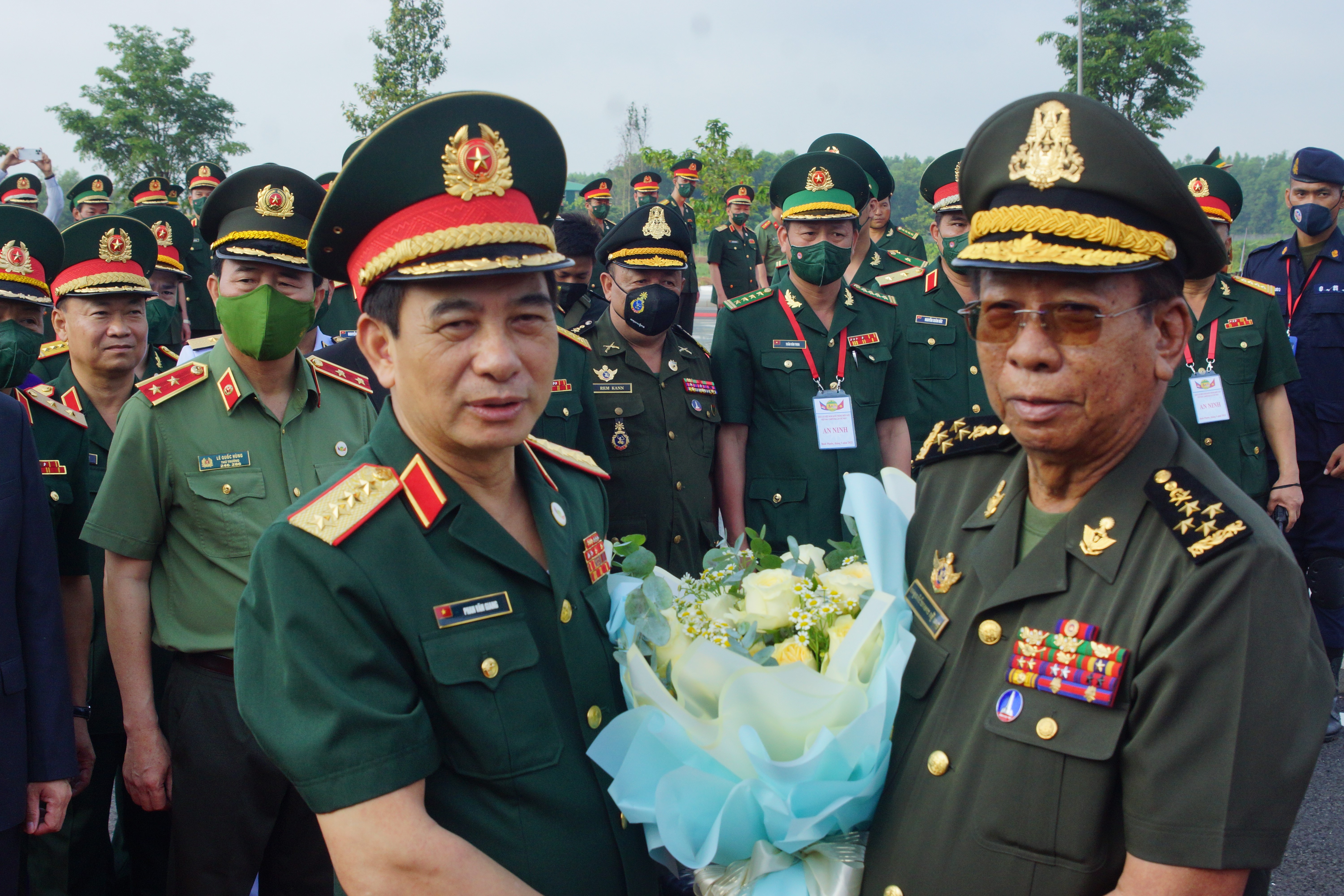 Đại tướng Phan Văn Giang, Ủy viên Bộ Chính trị, Bộ trưởng Bộ Quốc phòng Việt Nam đón Phó Thủ tướng, Bộ trưởng Bộ Quốc phòng Campuchia Samdech Pichey Sena Tea Banh tham dư Chương trình giao lưu hữu nghị quốc phòng biên giới Việt Nam - Campuchia lần thứ nhất năm 2022, tại huyện Lộc Ninh.