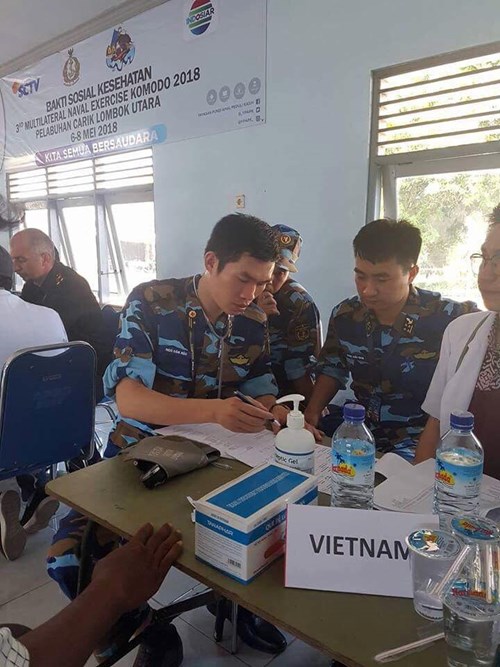 Trong khuôn khổ cuộc Diễn tập Hải quân đa phương KOMODO 2018 (MNEK 2018) đang diễn ra tại đảo Lombok (Indonesia), lực lượng quân y và công binh của Hải quân Việt Nam đã tham gia các Chương trình công binh dân sự và y tế cộng đồng, góp phần tăng cường tình đoàn kết, hữu nghị và hợp tác giữa Hải quân các nước.