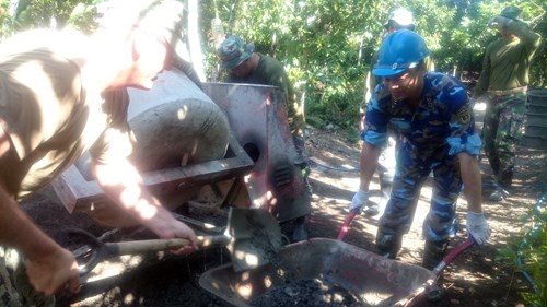 Thành viên nhóm Công binh Việt Nam tham gia làm đường trên đảo Lombok.