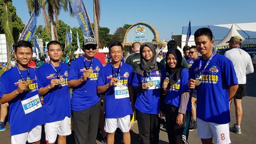 Đội Việt Nam tham gia chạy phong trào chụp ảnh chung với các thành viên đội bạn.