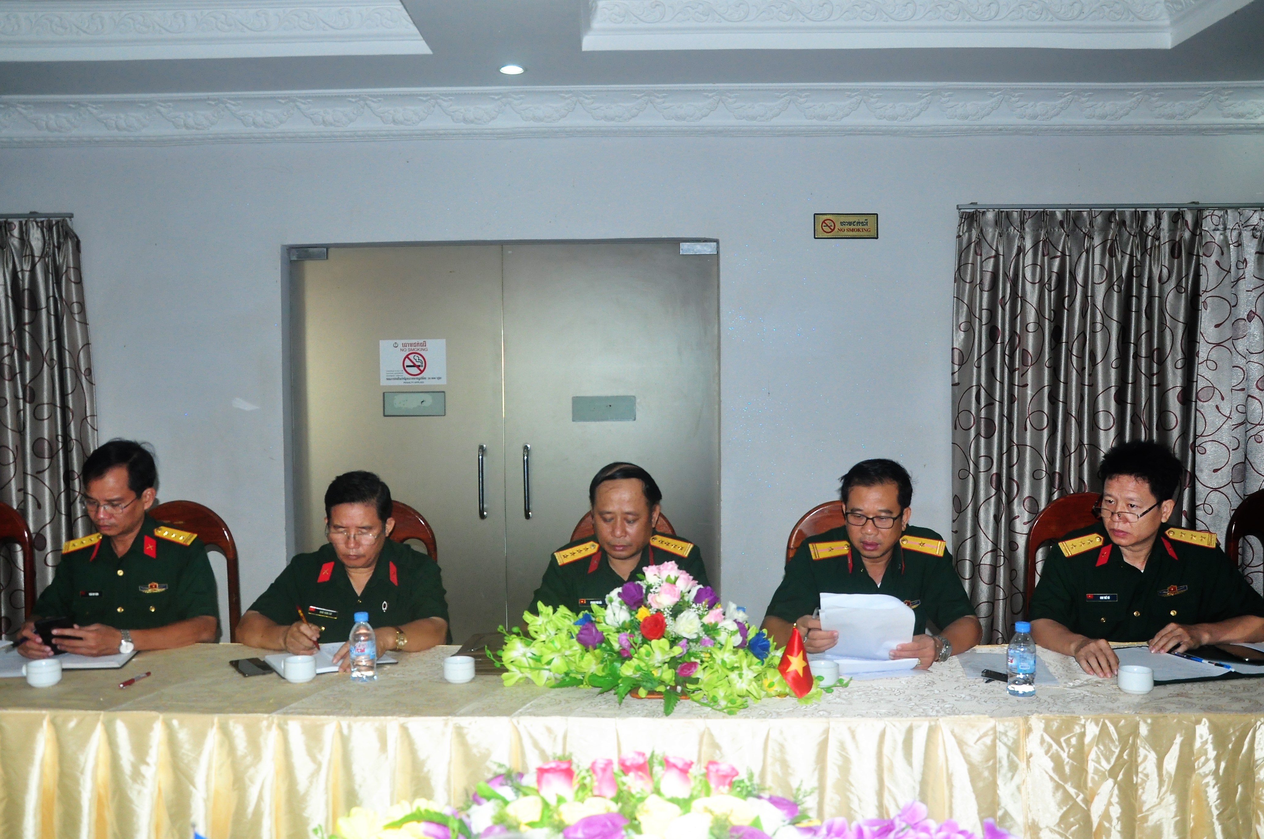 (QK7 Online) – Ngày 18/8/2018, tại tỉnh Kampong Cham, Đoàn công tác Quân khu 7 do Đại tá Phạm Phú Hải – Trưởng phòng Đối ngoại làm trưởng đoàn đã có buổi làm việc với các sĩ quan Quân đội Hoàng gia Campuchia từng trực tiếp chiến đấu và phối hợp chiến đấu trong đội hình Mặt trận 779 Quân tình nguyện Việt Nam. Dự buổi làm việc có Trung tướng Kao Tak, Phó Tư lệnh Quân khu 2 Quân đội Hoàng gia Campuchia cùng các cơ quan chức năng Quân khu 2.