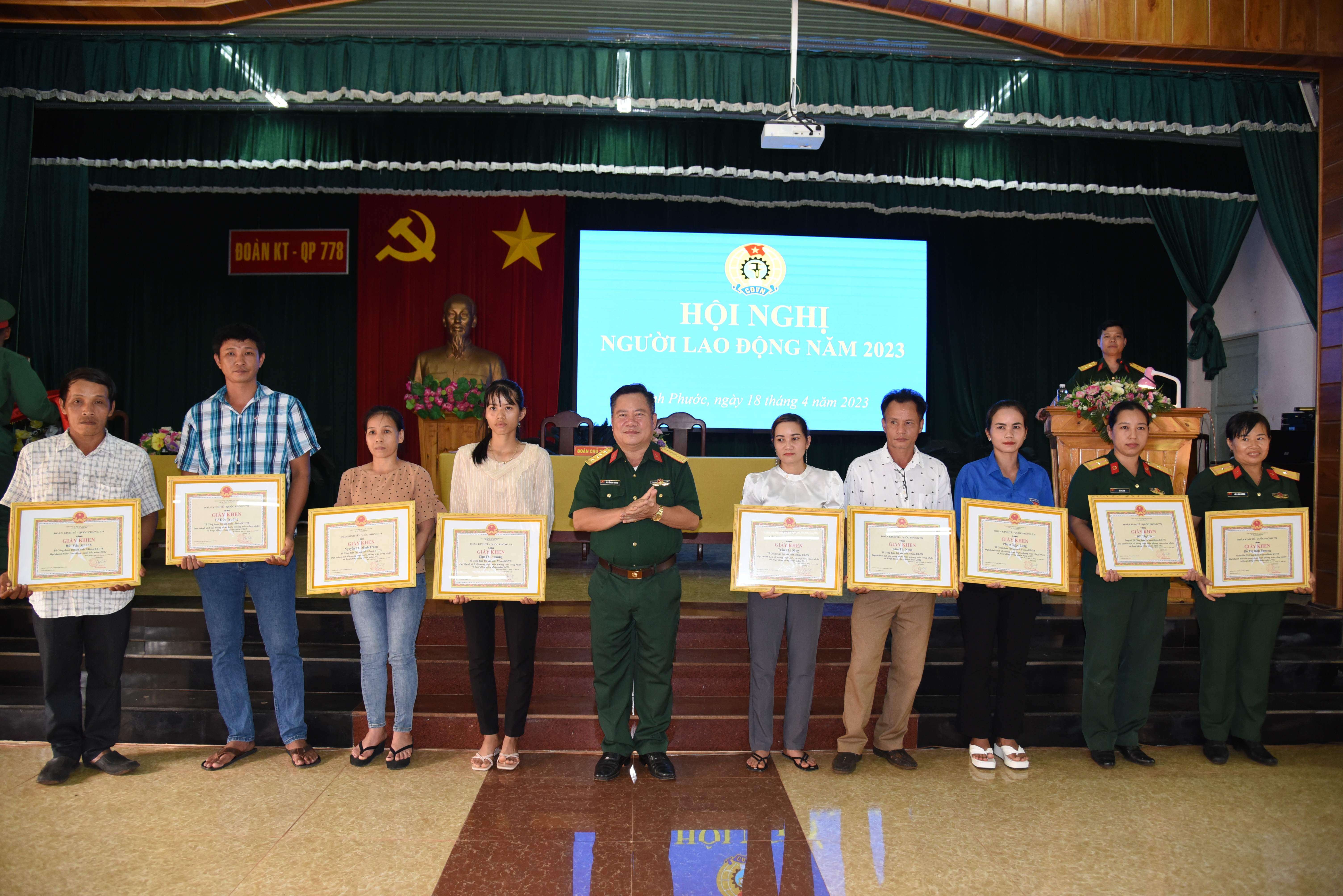 Dịp này, Ban chỉ huy đoàn trao giấy khen cho 9 cán bộ, nhân viên, người lao động đạt thành tích xuất sắc trong sản xuất năm 2022.