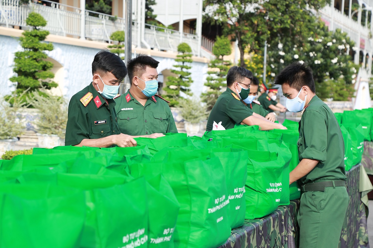 Chương trình “100.000 phần quà hỗ trợ người dân khó khăn” của Bộ Tư lệnh TP.HCM có sự đồng hành của Công ty Thiên Nga.