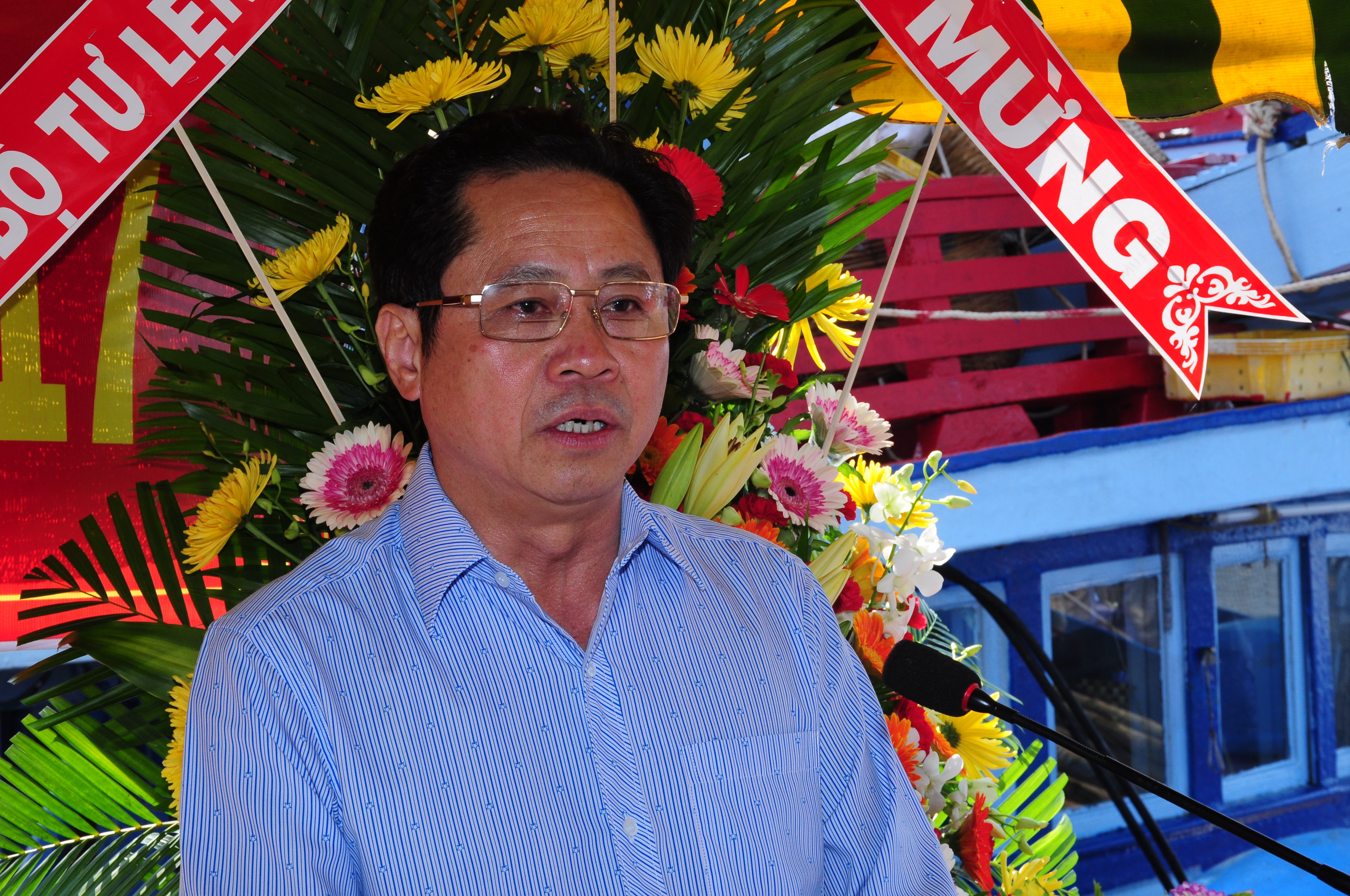 Đại tá Cao Xuân Minh, Tổng Giám đốc Công ty Đông Hải giao nhiệm vụ cho Đội tàu vây tại lễ xuất quân