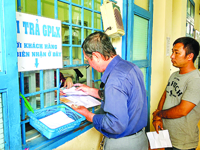 Người dân tới nhận Giấy phép lái xe sau khi đổi sang Giấy phép lái xe bằng thẻ nhựa