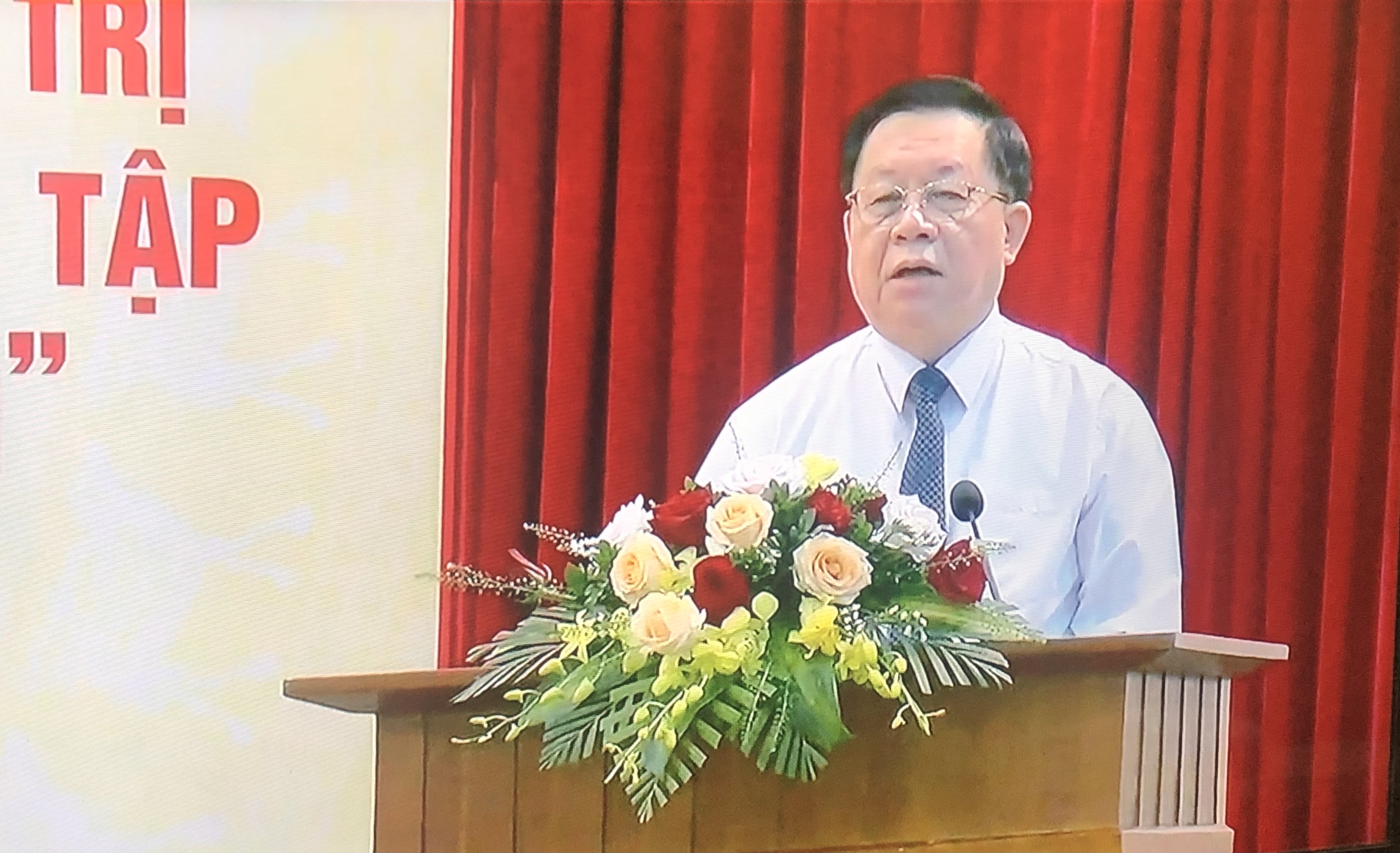Đồng chí Nguyễn Trọng Nghĩa, Bí thư Trung ương Đảng, Trưởng ban Tuyên giáo Trung ương dự và phát biểu chỉ đạo (Ảnh chụp màn hình).