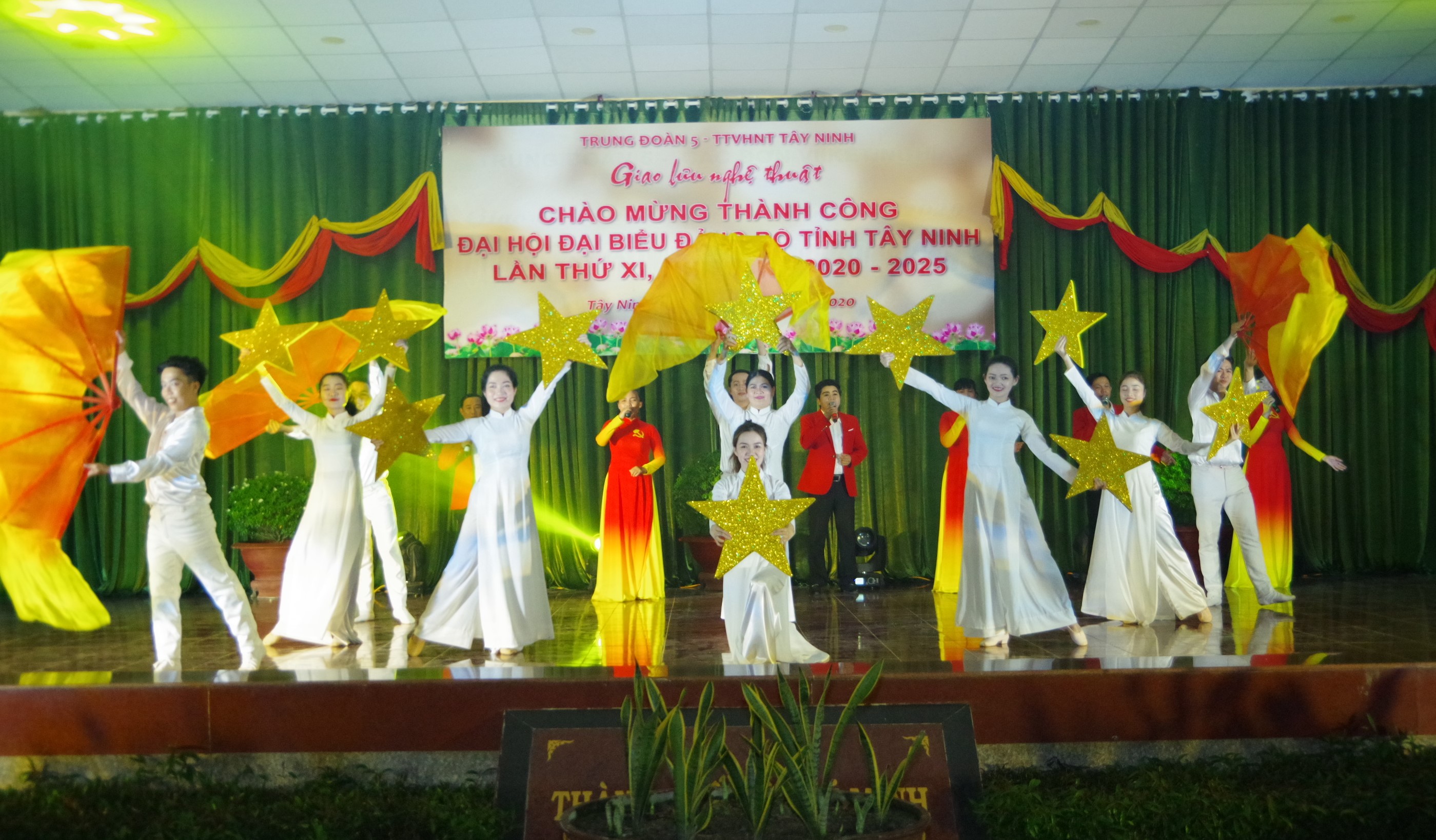 Các tiết mục văn nghệ được dàn dựng sáng tạo, công phu đan xen nhiều thể loại hát múa, đờn ca tài tử, ảo thuật...đêm giao lưu nghệ thuật làm cho không khí thành công của Đại hội đại biểu Đảng bộ tỉnh lần thứ XI thêm tưng bừng, khí thế. Góp phần động viên  cán bộ, chiến sĩ Trung đoàn 5 tích cực học tập, rèn luyện, thi đua huấn luyện giỏi, kỷ luật nghiêm, sẵn sàng chiến đấu cao, an toàn tuyệt đối, phấn đấu thực hiện thắng lợi nhiệm vụ chính trị được giao, chung tay xây dựng quê hương Tây Ninh ngày càng giàu đẹp, văn minh tiến tới Đại hội đại biểu toàn quốc lần thứ XIII của Đảng.