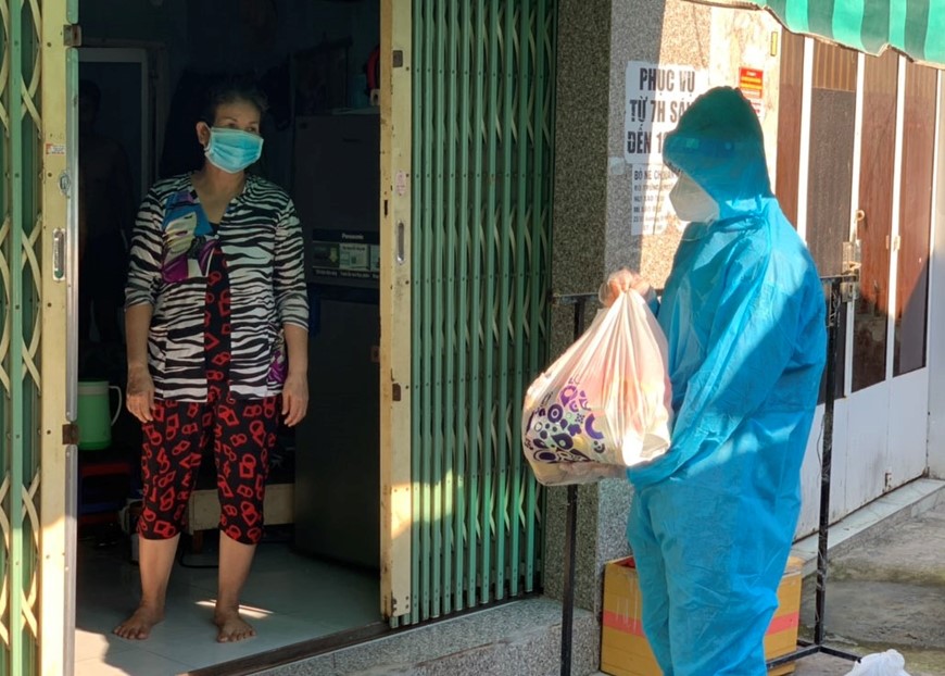 “Những ngày qua, chúng tôi đã có mặt ở từng con hẻm, từng chung cư trao phần quà an sinh xã hội và cấp phát đồ người dân nhờ mua, tuyên truyền các biện pháp phòng, chống dịch. Chúng tôi làm việc với tinh thần việc gì khó, nơi nào cần thì có bộ đội. Tôi hướng dẫn anh em trong đoàn một số biện pháp phòng dịch. Chẳng hạn như đeo khẩu trang phải che khít mũi và miệng. Test nhanh có thể tự làm được nhưng phải lấy đủ lượng dịch, phải thay bao tay thường xuyên. Khi trao nhu yếu phẩm cho người dân không trao trực tiếp tay qua tay mà treo lên cửa hoặc để bậc thềm, hiên nhà. An toàn cho mình cũng là an toàn cho đồng đội”, Trung úy Nguyễn Văn Mạnh chia sẻ.