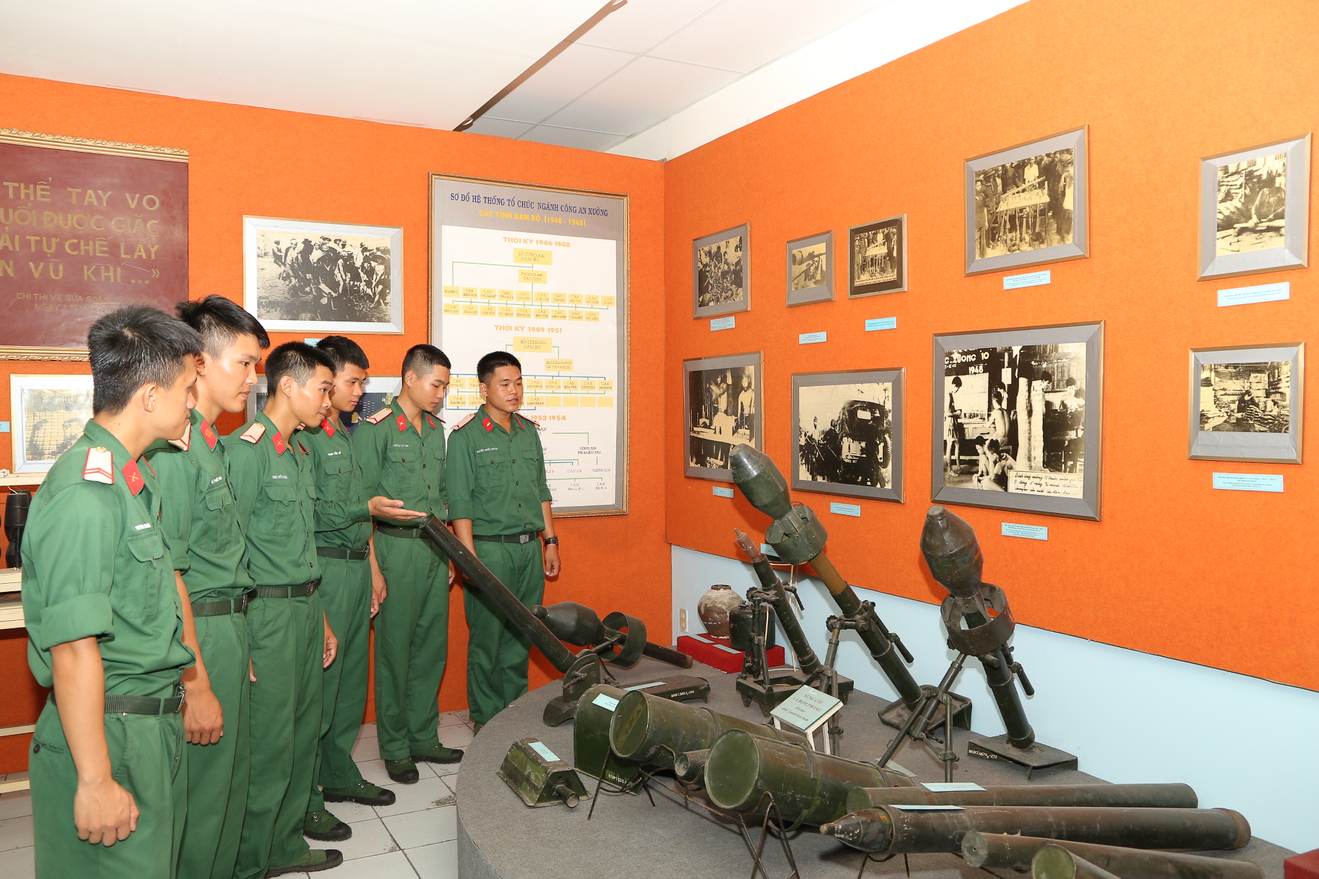 Các chiến sĩ tham quan các phòng trưng bày của Bảo tàng Quân khu 7.