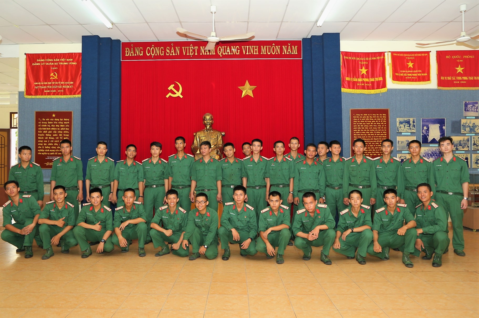 Hạ sĩ quan, chiến sĩ tham quan và chụp hình lưu niệm tại Nhà truyền thống Cục Chính trị Quân khu.
