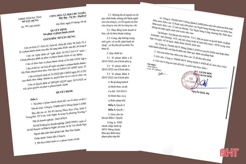 Theo thông tin từ Báo Hà Tĩnh, Sở Xây dựng tỉnh Hà Tĩnh vừa có Quyết định xử phạt vi phạm hành chính với số tiền hơn 500 triệu đồng đối với Công ty TNHH MTV Đông Quân Land.