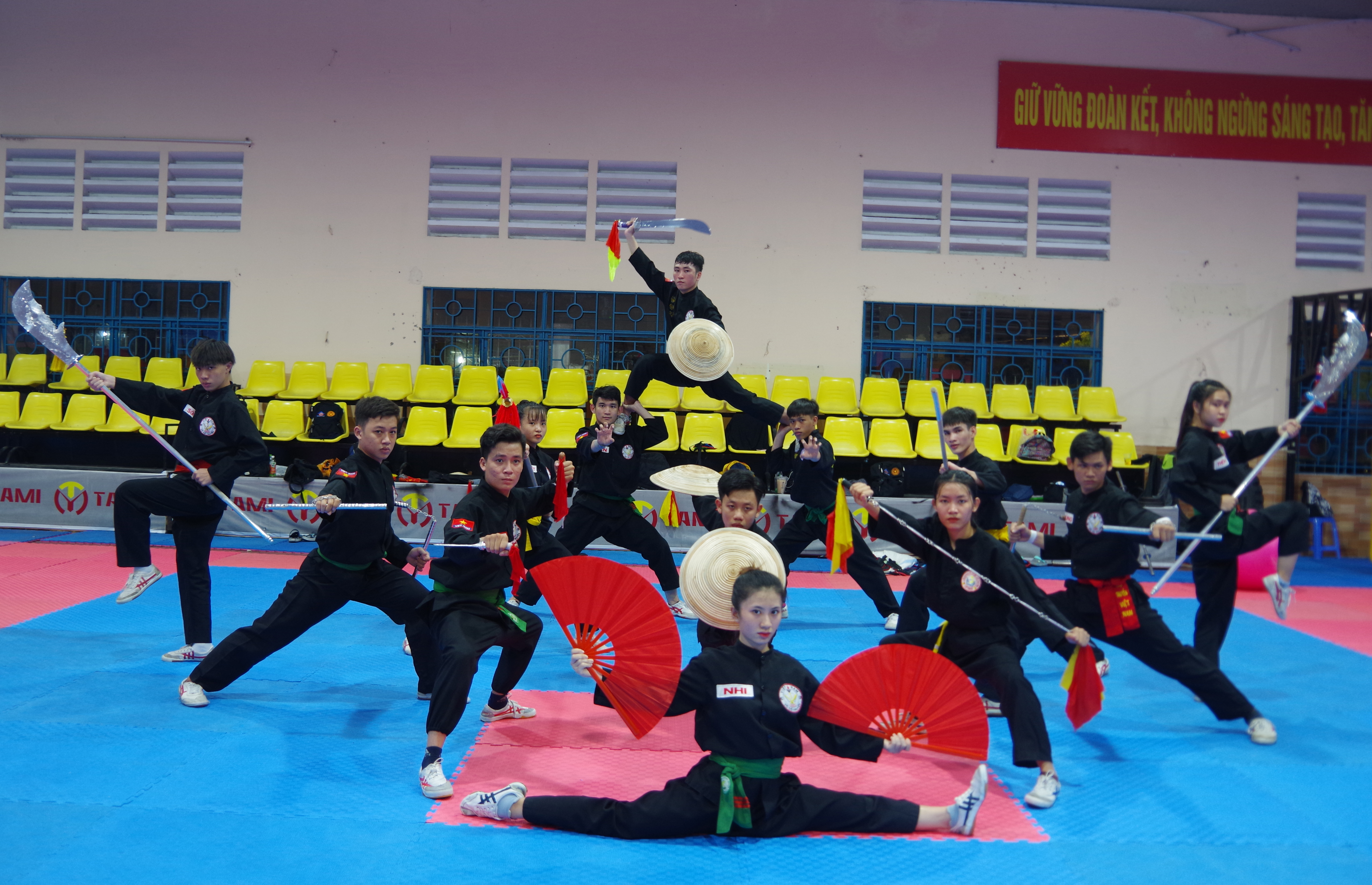 Đội Võ Cổ truyền tập luyện chuẩn bị giải Vô địch toàn quốc.