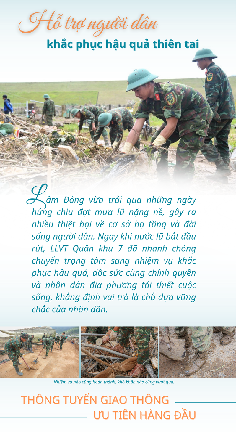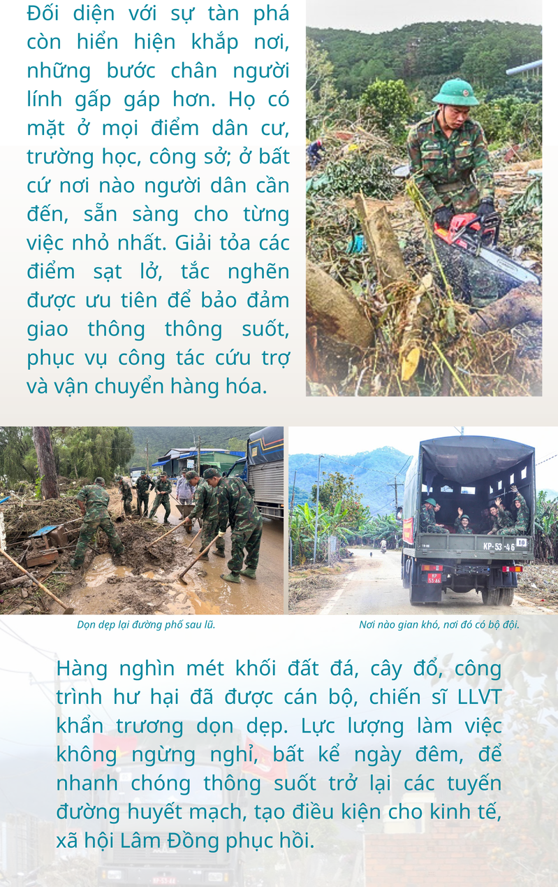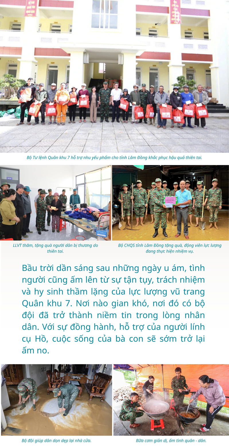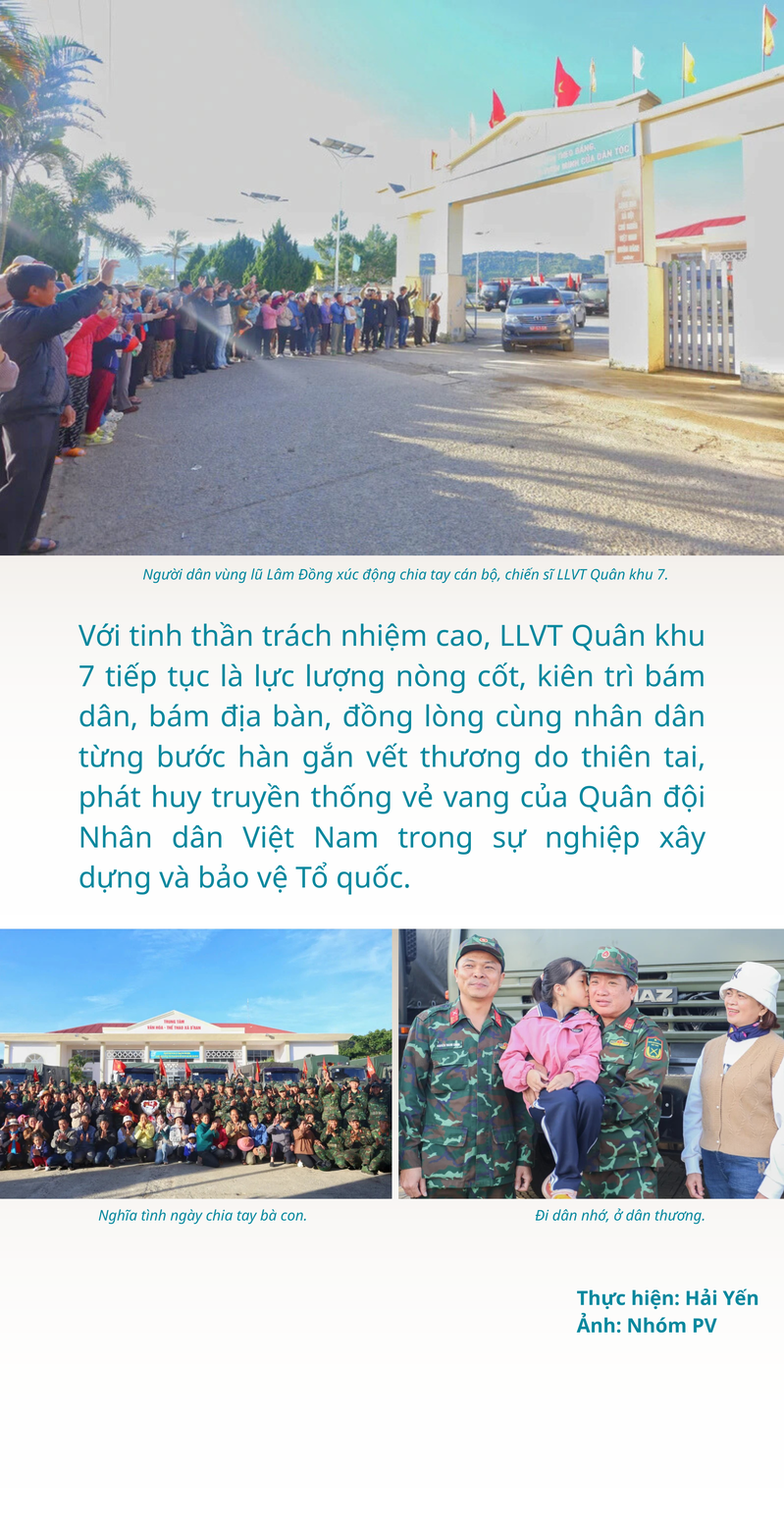 Người dân vùng lũ Lâm Đồng xúc động chia tay cán bộ, chiến sĩ LLVT Quân khu 7